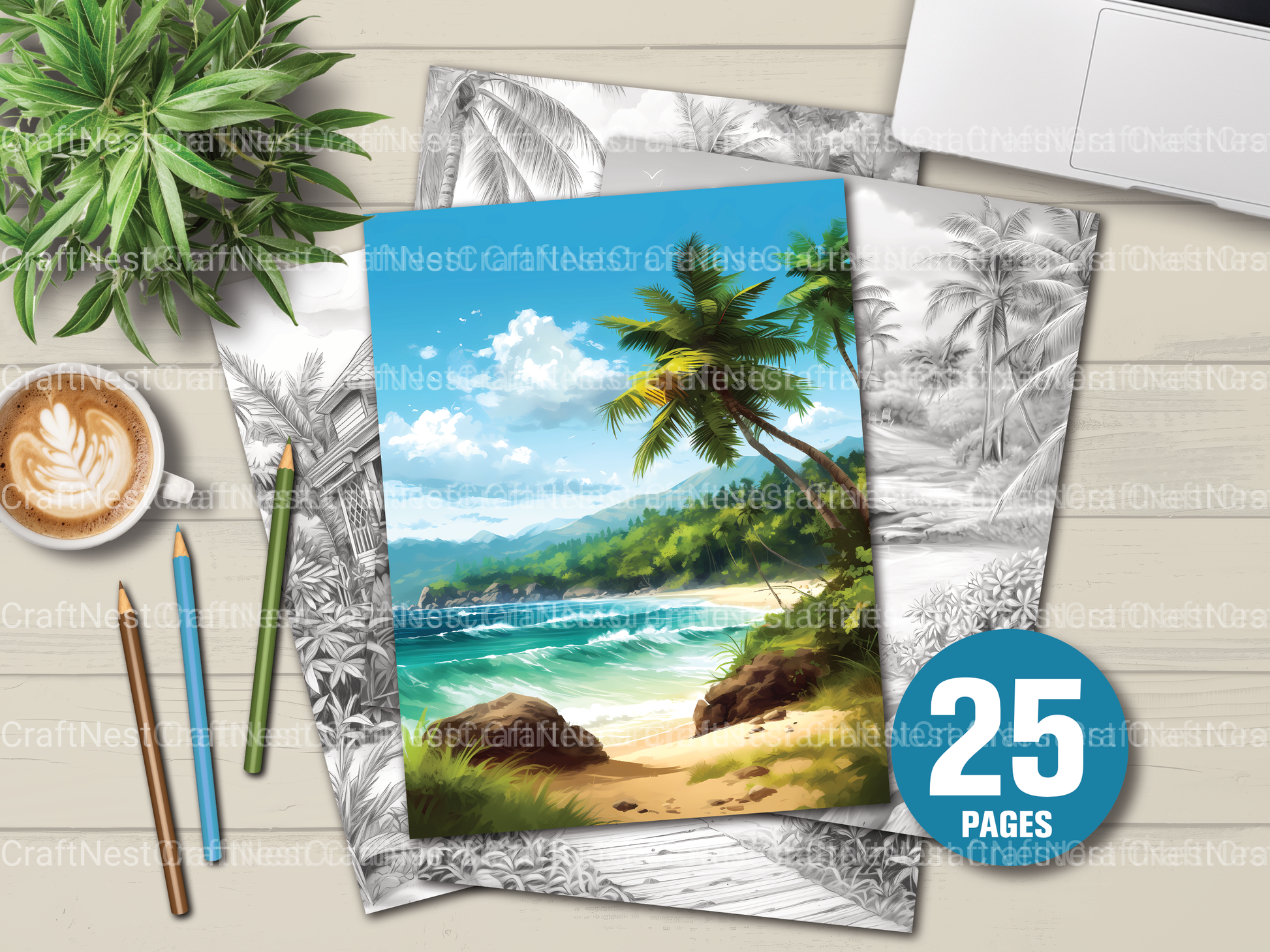 Escape to paradise with the Tropical Beach Coloring Book, featuring stunning beach scenes and exotic wildlife, perfect for relaxation and creative expression.