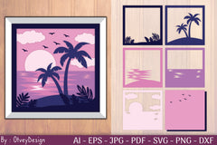 Tropical Beach Sunset 3D Shadow Box SVG Bundle