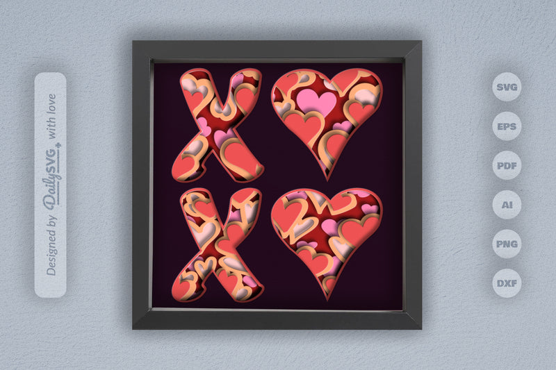 Celebrate love with the Valentine XOXO Papercut SVG Bundle, featuring intricate designs perfect for heartfelt crafts and romantic decorations. Ideal for creating personalized gifts, cards, and home decor that express your affection.