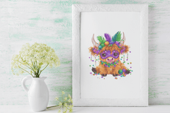 Unleash the spirit of Mardi Gras with our Mardi Gras Cows: Vibrant Carnival Art Bundle. This captivating collection features lively cow designs adorned in festive carnival attire, perfect for adding a splash of color to your creative projects. Ideal for party decorations, crafts, and more, these unique illustrations bring the joyous essence of Mardi Gras to life.