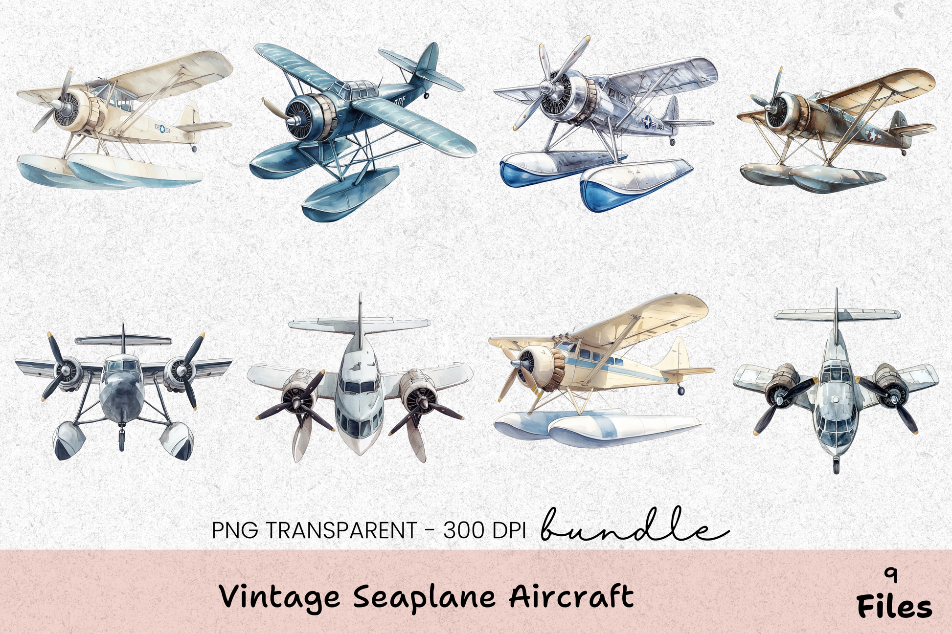 Elevate your creative projects with our Vintage Seaplane Aircraft Clipart Bundle. This collection features meticulously crafted, high-resolution seaplane illustrations perfect for aviation enthusiasts and retro design lovers. Ideal for digital scrapbooking, personalized gifts, and unique wall art, these timeless designs add a touch of nostalgia to any project. Unleash your creativity with these versatile clipart images, perfect for both personal and commercial use. Dive into the world of vintage aviation and let your imagination soar!