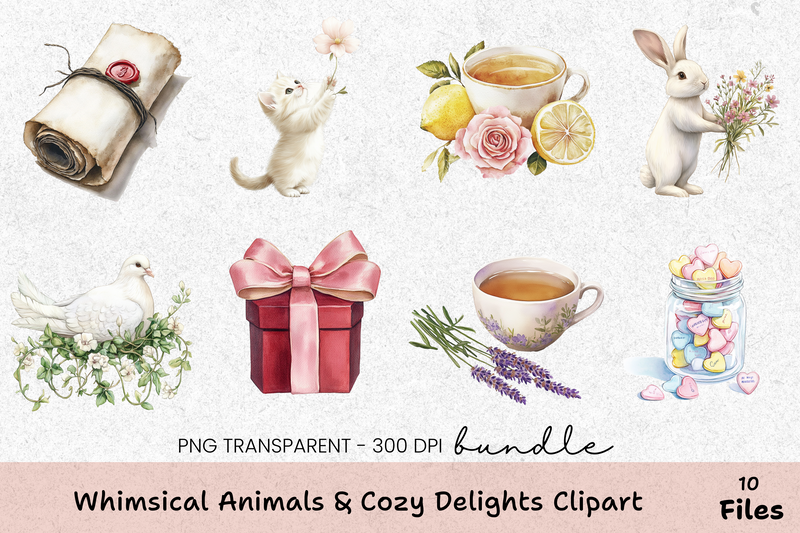 Whimsical Animals & Cozy Delights Clipart Bundle