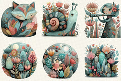 Unleash creativity with the Whimsical Forest Clipart Bundle, featuring enchanting woodland creatures and vibrant nature elements, perfect for magical DIY projects and captivating nursery decor.