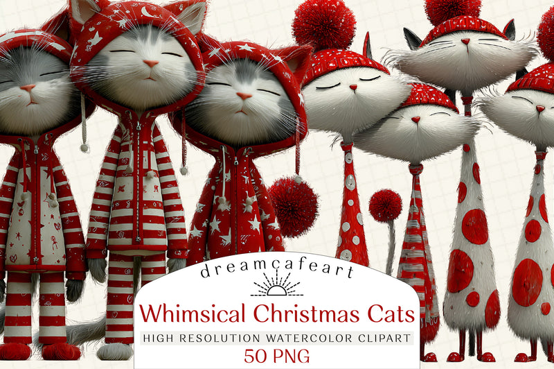 Unleash holiday cheer with our Whimsical Quirky Christmas Cats Clipart Bundle, featuring playful feline designs perfect for festive crafts and unique holiday projects. Ideal for creating charming greeting cards, personalized gift tags, and delightful decorations, this bundle brings a touch of whimsy to your seasonal creations. Explore a variety of quirky cat illustrations that capture the magic of Christmas, making your designs stand out with creativity and charm. Perfect for DIY enthusiasts and professional designers alike, this clipart collection is your go-to resource for adding a fun, festive flair to any project.