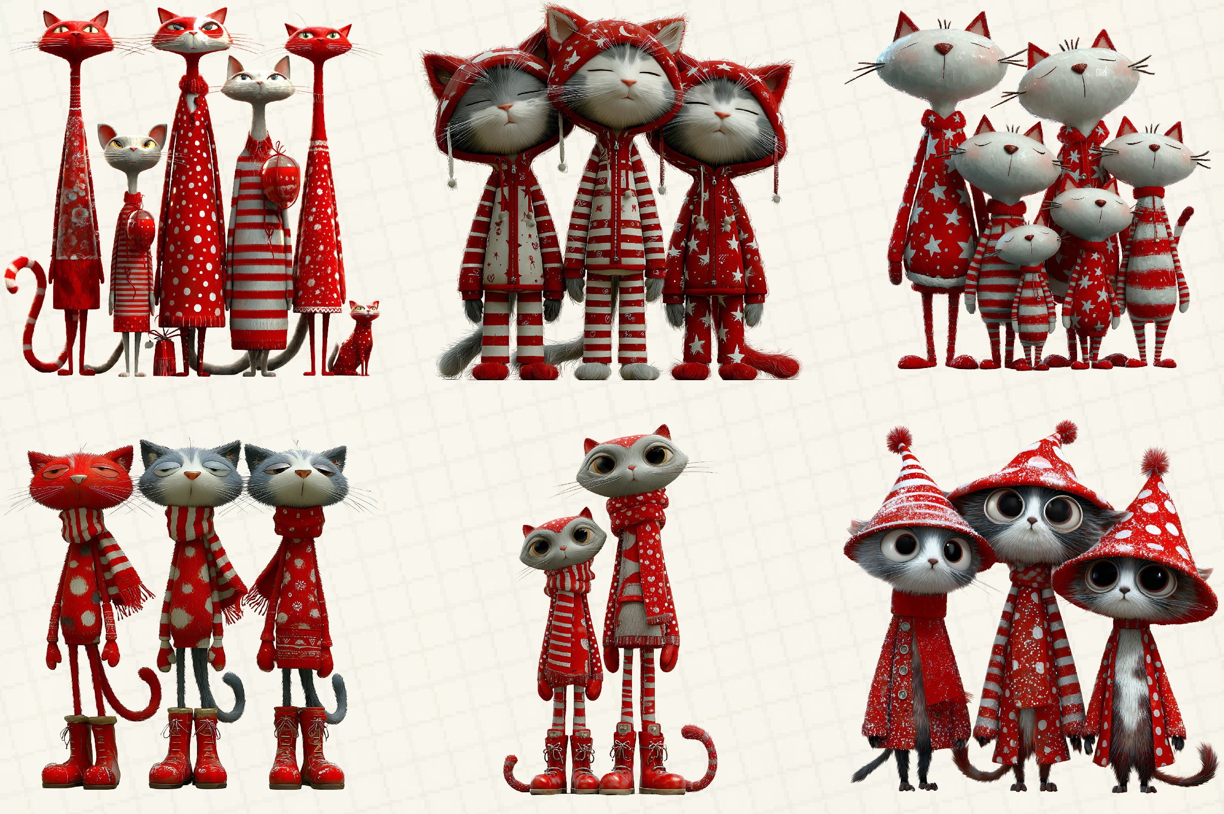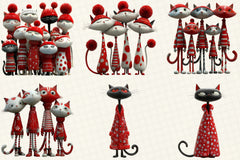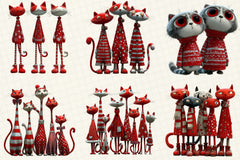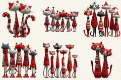 Whimsical Quirky Christmas Cats Clipart Bundle