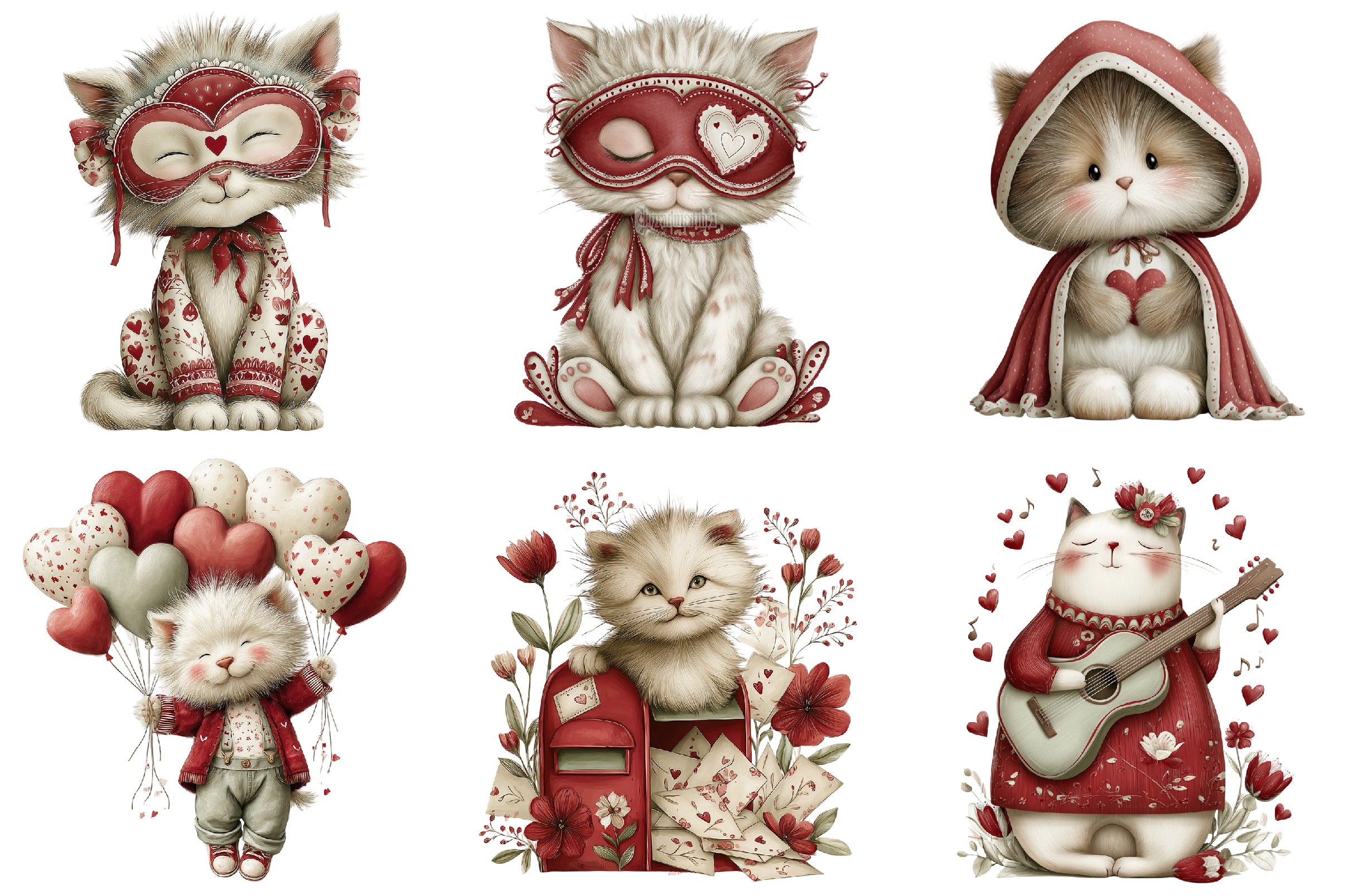 Delight in the charm of our Whimsical Valentine Cats Clipart Bundle, featuring adorable feline designs perfect for heartwarming crafts and creative projects. Ideal for Valentine's Day cards, scrapbooking, and digital art, these playful cat illustrations add a touch of whimsy to any creation. Unleash your creativity with this enchanting collection, designed to inspire and captivate. Perfect for cat lovers and craft enthusiasts alike, this bundle is your go-to resource for unique and lovable designs.