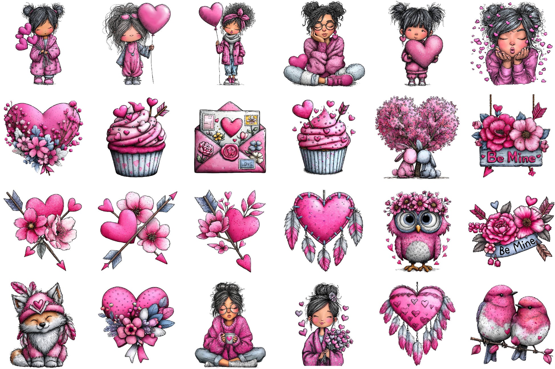 Delight in the Whimsical Valentine's Day Clipart Bundle, a charming collection of romantic designs perfect for heartfelt crafts and digital projects. Capture the essence of love with these enchanting illustrations, ideal for creating personalized cards, invitations, and more. Elevate your creative endeavors with this versatile bundle, designed to inspire and captivate. Perfect for DIY enthusiasts and professional designers alike, this collection offers endless possibilities for expressing affection and creativity. Transform your Valentine's Day projects with these unique and delightful clipart elements, crafted to add a touch of whimsy and romance.