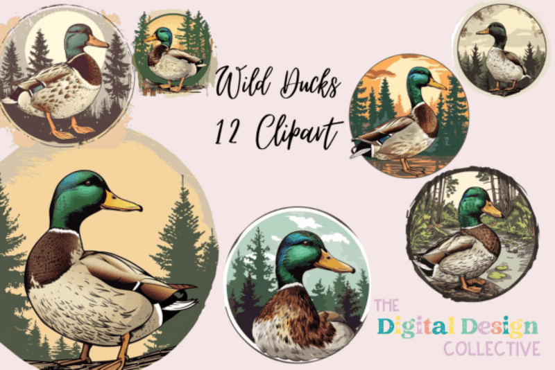 Discover the Wild Duck Clipart Bundle, a unique collection of vibrant duck illustrations perfect for creative projects, digital designs, and nature-themed crafts.