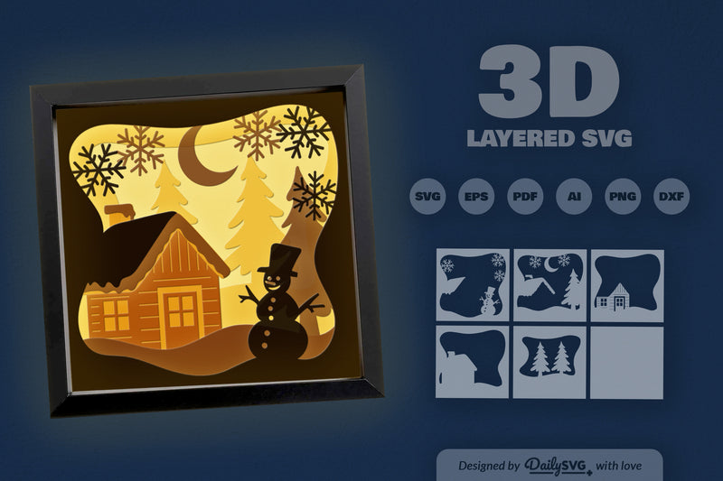 Embrace the charm of winter with our Winter Cabin Papercut SVG Bundle featuring a delightful Snowman. Perfect for cozy holiday crafts, this bundle brings a touch of seasonal magic to your DIY projects.
