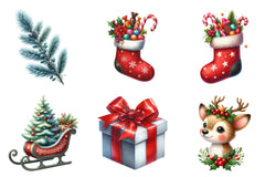 Unleash creativity with this delightful collection of Christmas-themed clipart, ideal for cards, invitations, and digital scrapbooking.