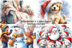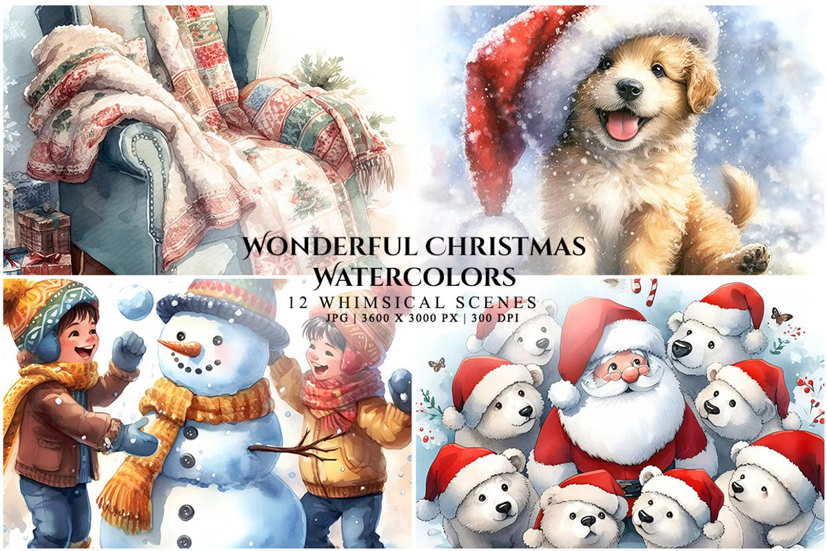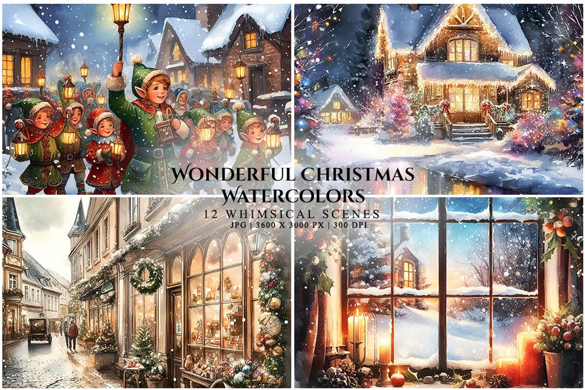 Capture the holiday spirit with our Wonderful Christmas Watercolors, featuring vibrant festive designs perfect for seasonal crafts and decorations. Ideal for creating enchanting holiday cards and gifts.
