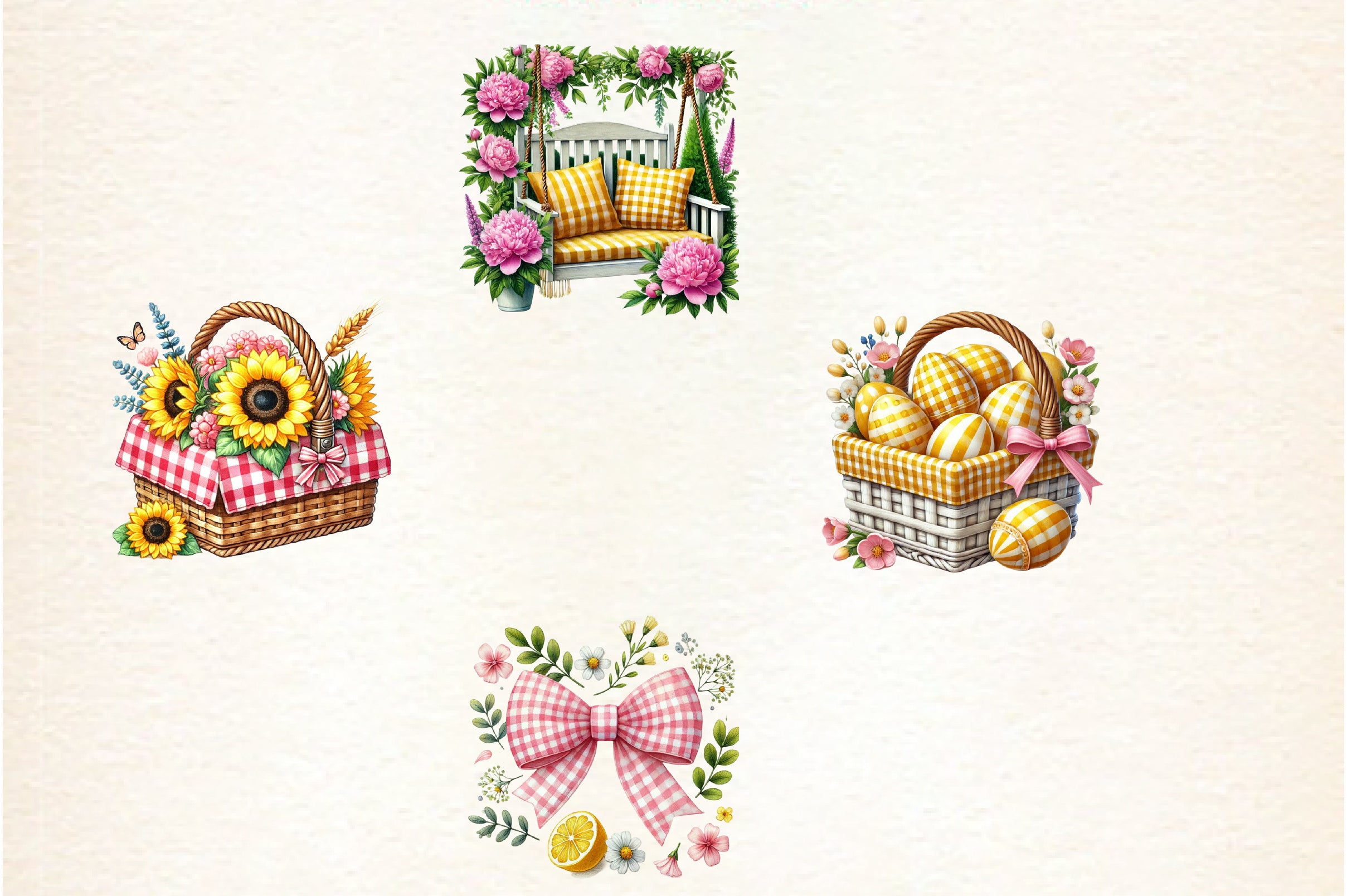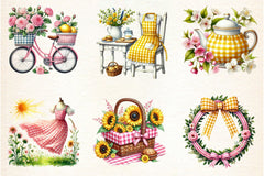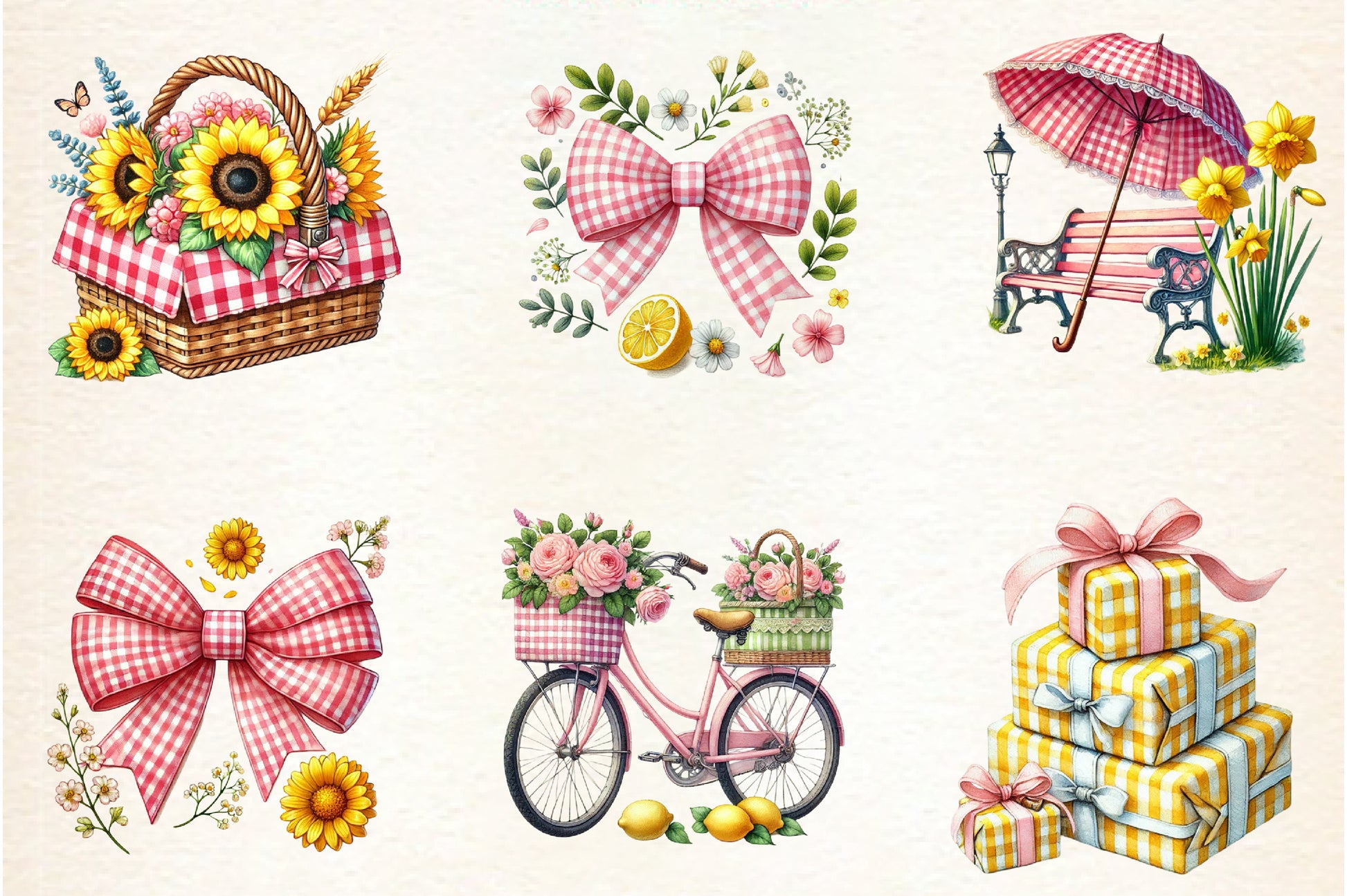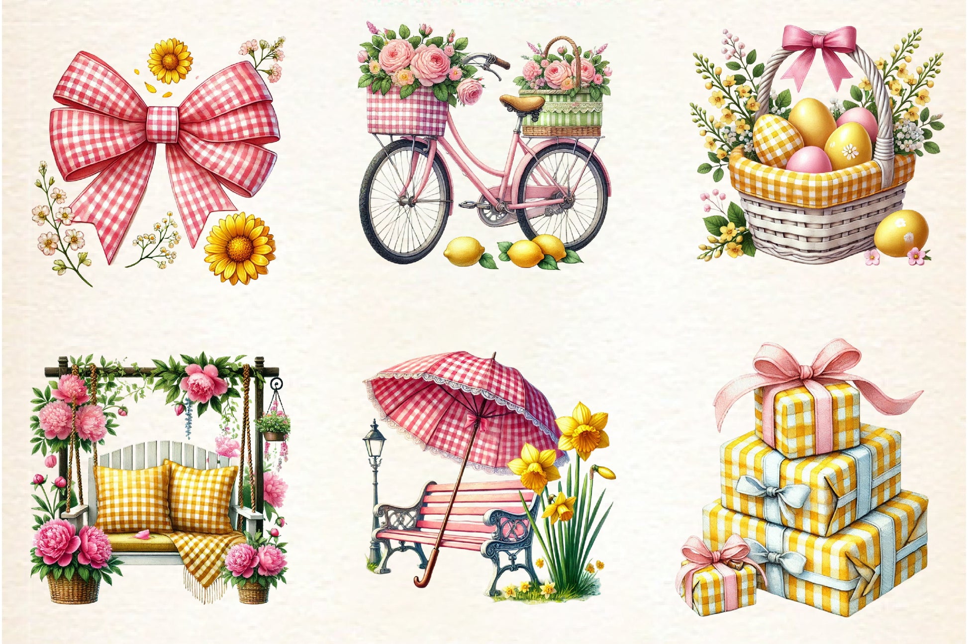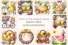Yellow & Pink Gingham Spring Clipart Bundle