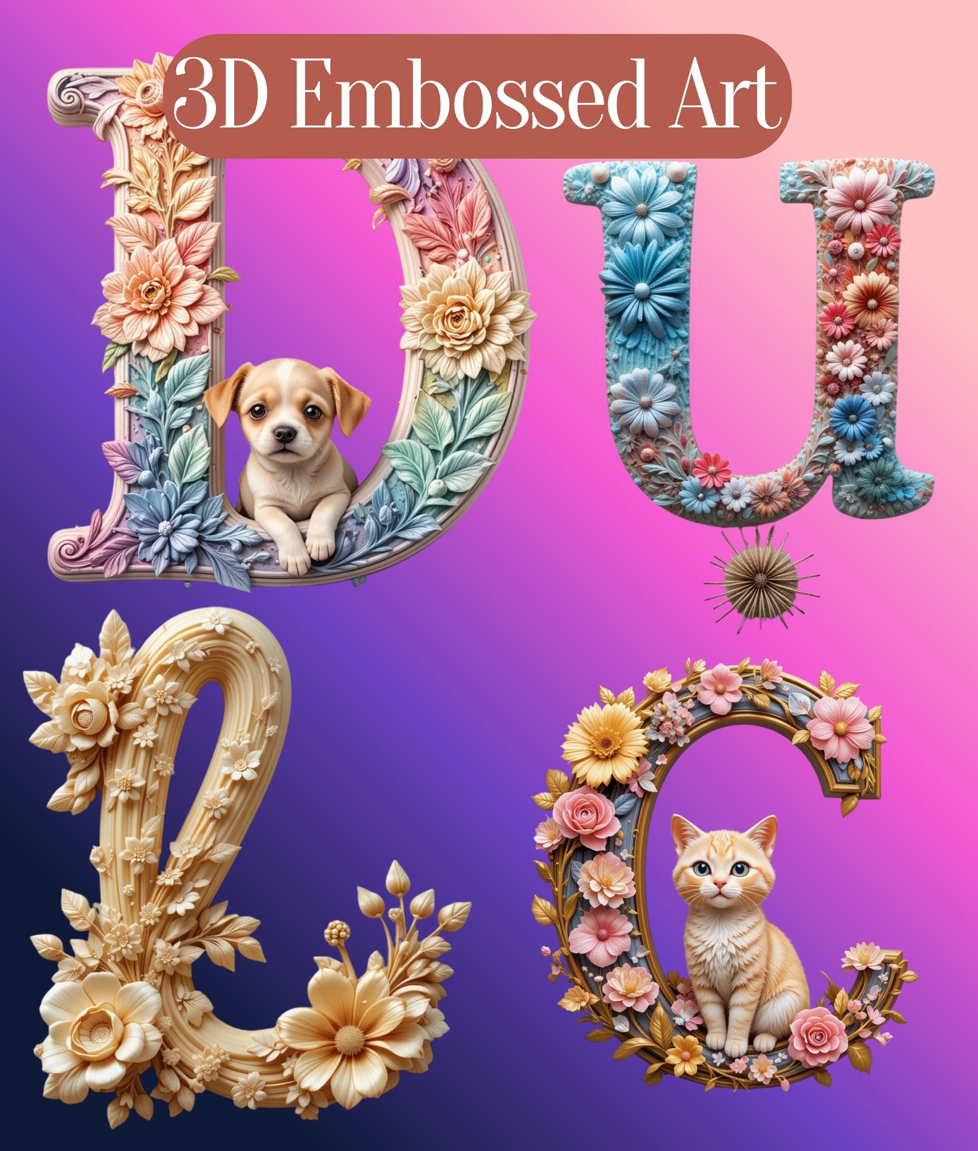 Unleash creativity with our 3D Embossed Alphabet Clipart Bundle, perfect for crafting stunning designs. This versatile collection features intricately detailed letters, ideal for personalized projects, scrapbooking, and digital art. Elevate your creations with unique, eye-catching typography that stands out. Perfect for designers, crafters, and educators looking to add a touch of elegance and dimension to their work. Explore endless possibilities with this must-have clipart set, designed to inspire and impress.