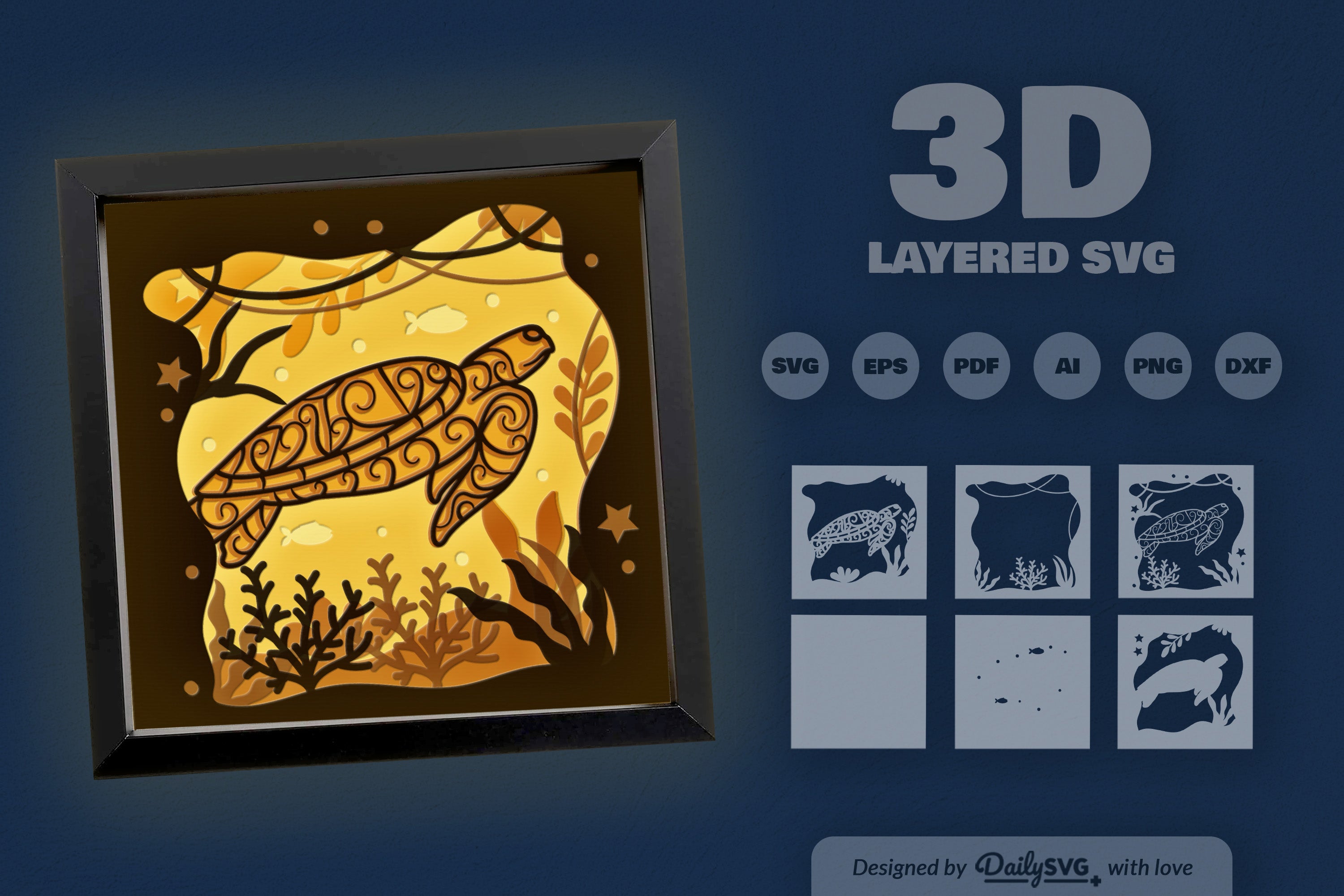Discover the enchanting 3D Mandala Sea Turtle Papercut SVG Bundle, perfect for ocean-themed crafts and decor. Create stunning layered designs with intricate sea turtle patterns, ideal for scrapbooking, card making, and home decoration projects.
