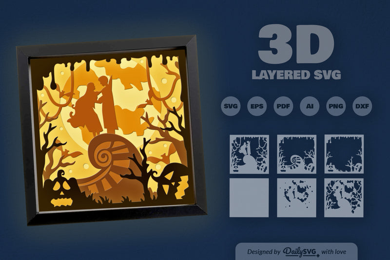 Enchant your Halloween crafts with the 3D Romantic Halloween Night Papercut SVG Bundle. Perfect for creating spooky yet charming decorations, this bundle features intricate designs that bring a magical touch to your seasonal projects.