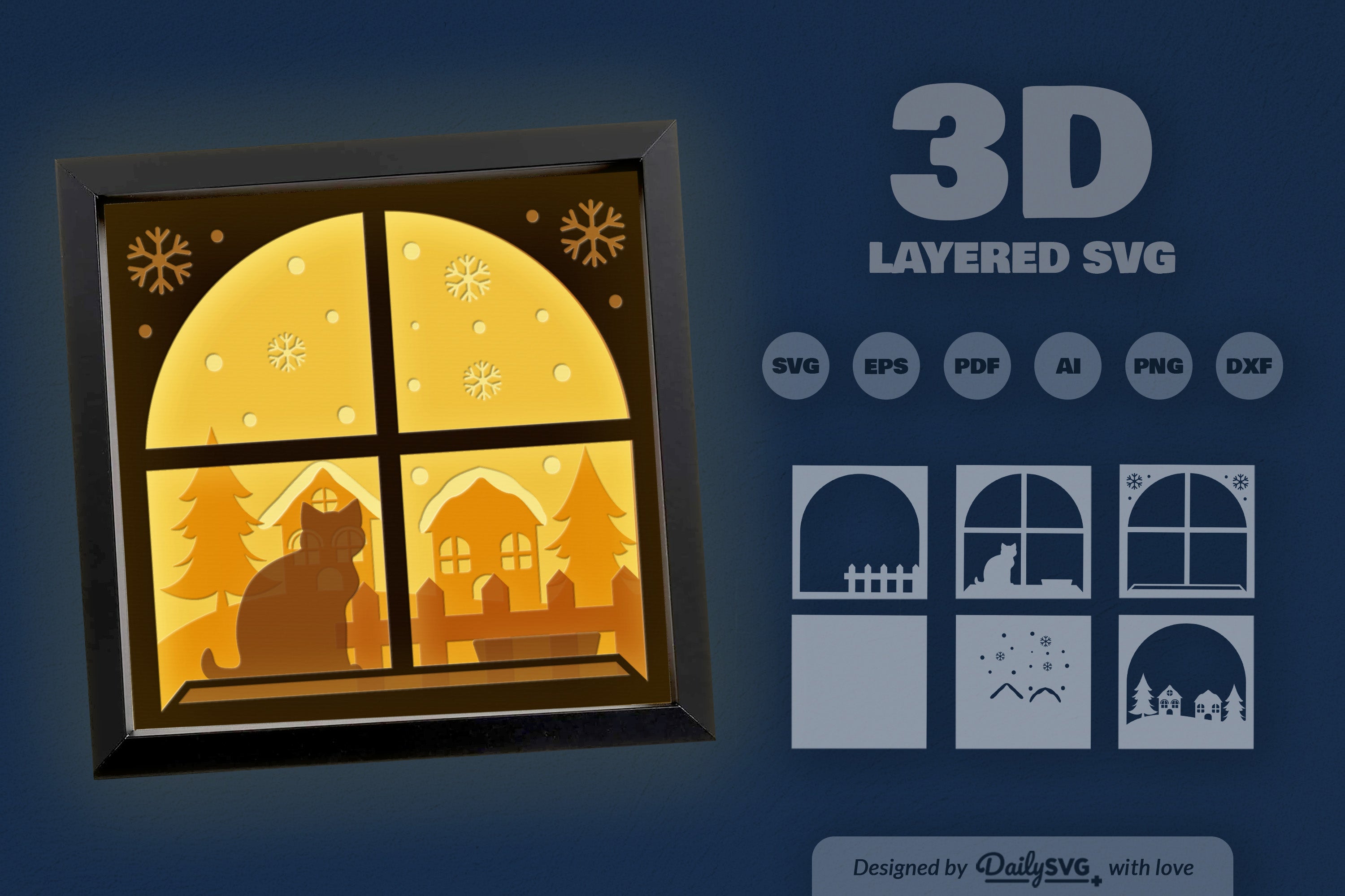 Transform your crafts with the 3D Winter Cat on Windows Papercut SVG Bundle. Perfect for creating enchanting winter scenes, this bundle features intricate cat designs that add a cozy touch to any project. Ideal for holiday decorations, greeting cards, and home decor, these SVG files are easy to use and bring a whimsical winter charm to your creations.
