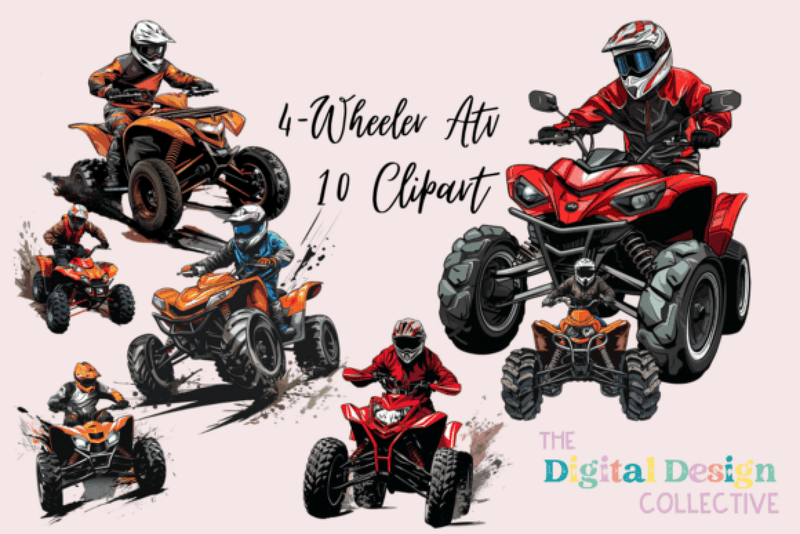 Rev up your creativity with the 4 Wheeler ATV Quad Rider Clipart Bundle, featuring dynamic and high-quality ATV designs perfect for adventurous projects, digital scrapbooking, and personalized gifts.