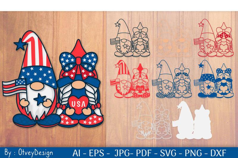 4th of July Patriotic Gnome Papercut SVG Bundle