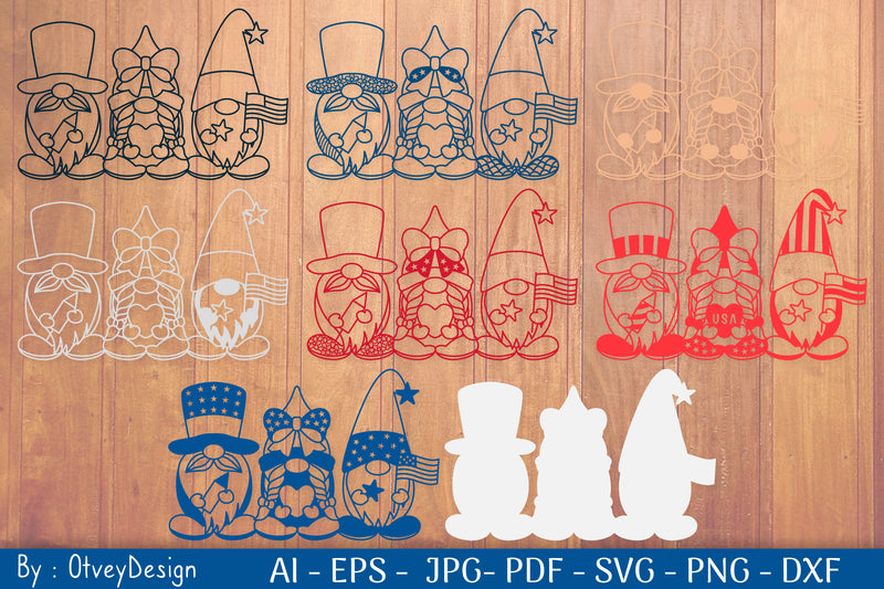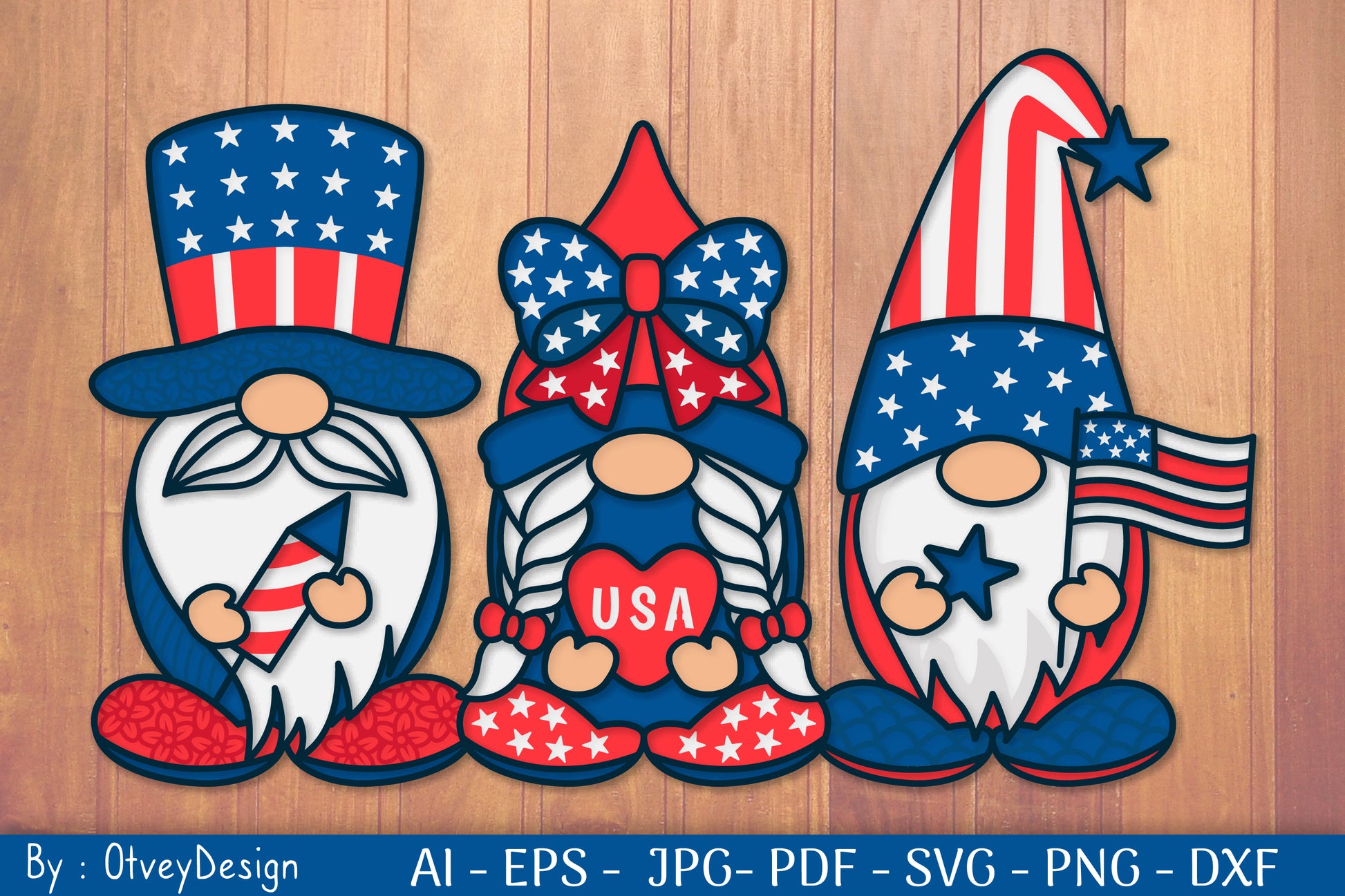 4th of July Patriotic Gnome Papercut SVG Bundle