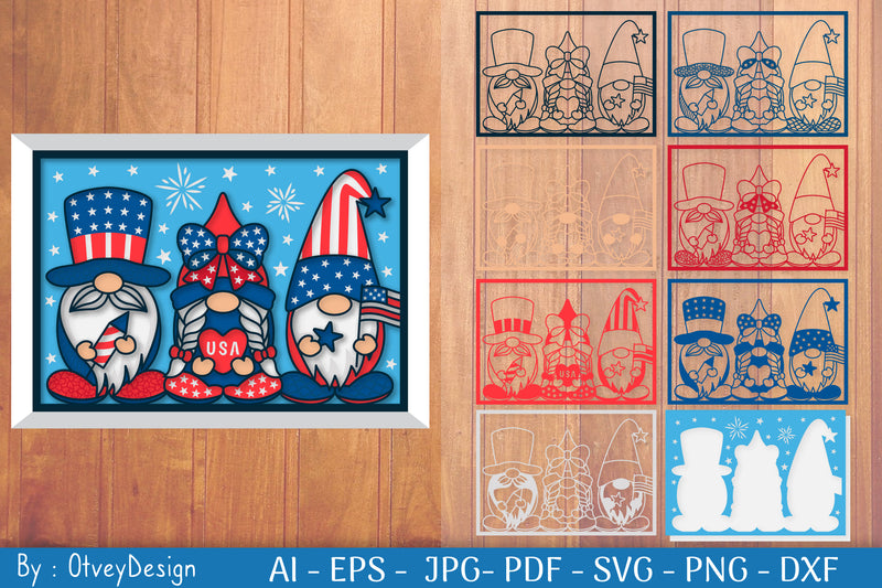 4th of July Patriotic Gnome Shadow Box SVG Bundle