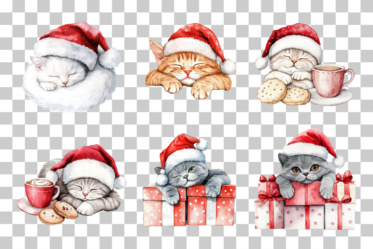 Delight in the festive charm of our Adorable Christmas Cats Clipart Bundle, featuring cute and whimsical cat designs perfect for holiday crafts and decorations. Ideal for creating enchanting Christmas cards, gift tags, and festive scrapbooks, these high-quality illustrations bring a touch of magic to your seasonal projects. Unleash your creativity with this versatile collection, perfect for DIY enthusiasts and professional designers alike. Capture the spirit of the holidays with these irresistible feline friends, and make your Christmas crafts truly unforgettable.