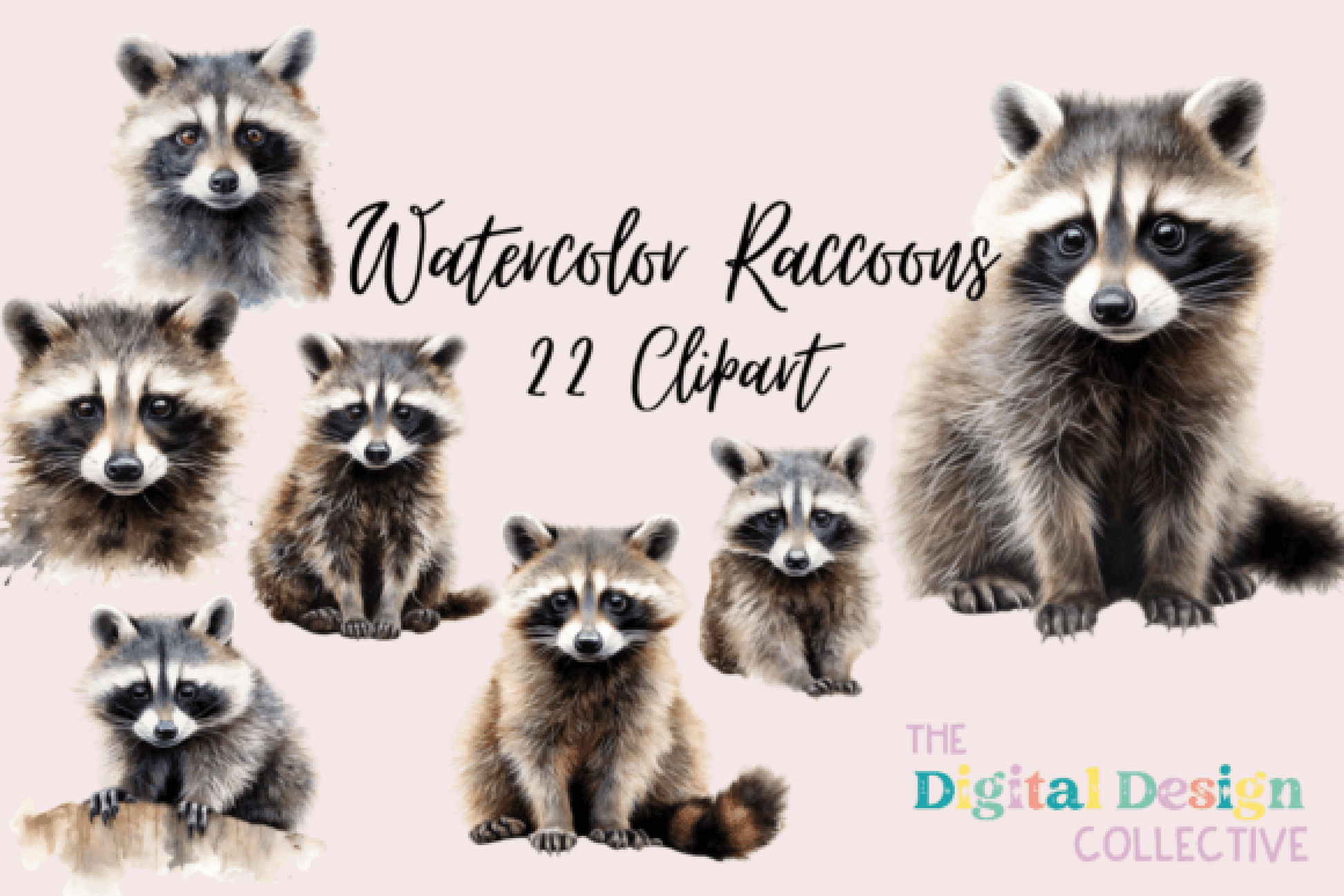 Enhance your creative projects with the Raccoon Clipart Bundle, featuring cute animal illustrations perfect for scrapbooking, invitations, and nursery decor. Ideal for adding a whimsical touch to any design.