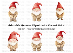 Adorable Red Hat Gnomes Clipart Bundle