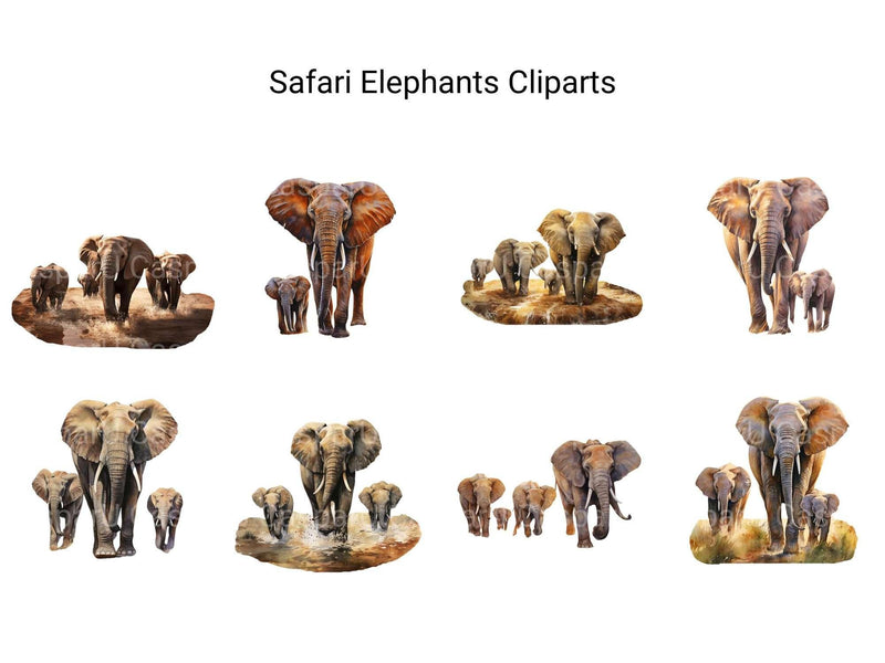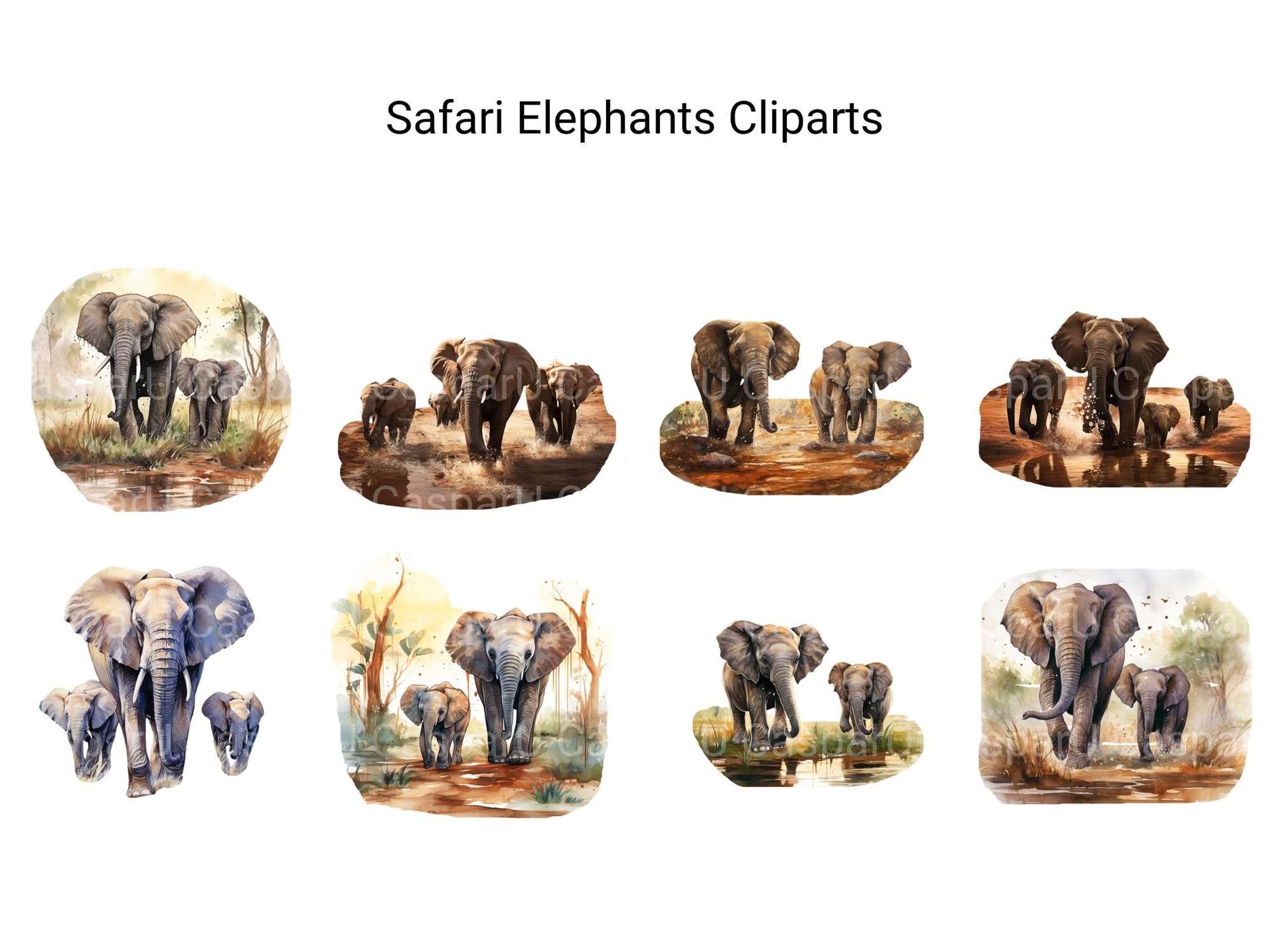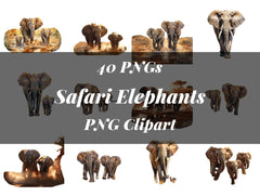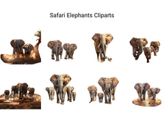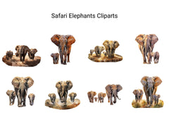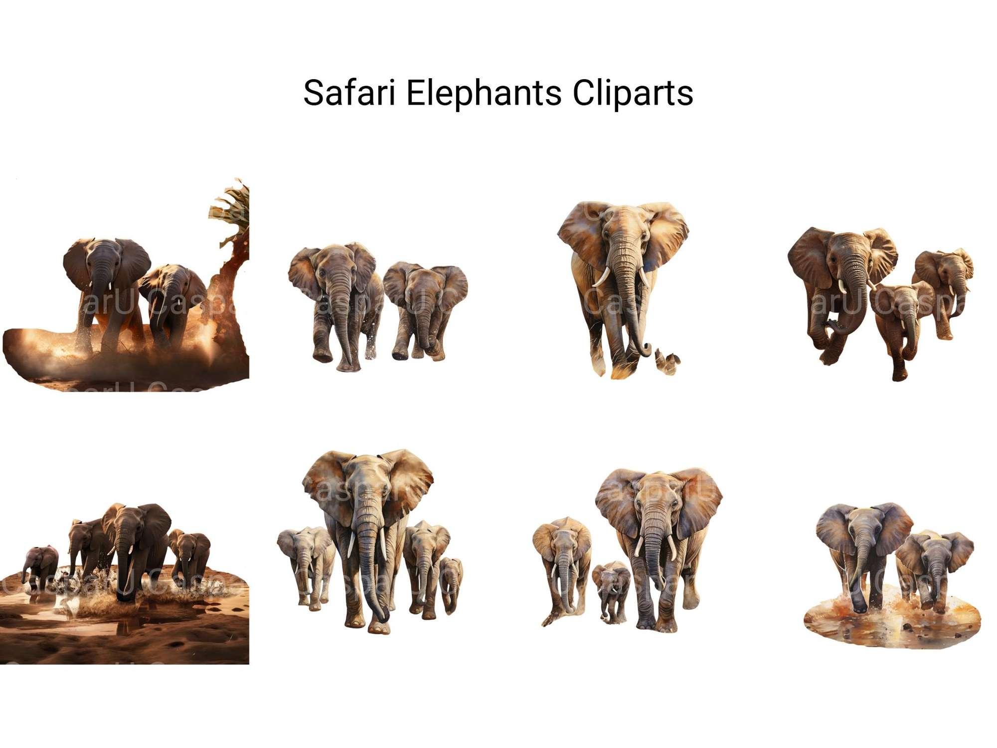 Roam the wild with this African Safari Elephants Clipart set, featuring majestic elephants in transparent designs, perfect for nature-inspired projects.