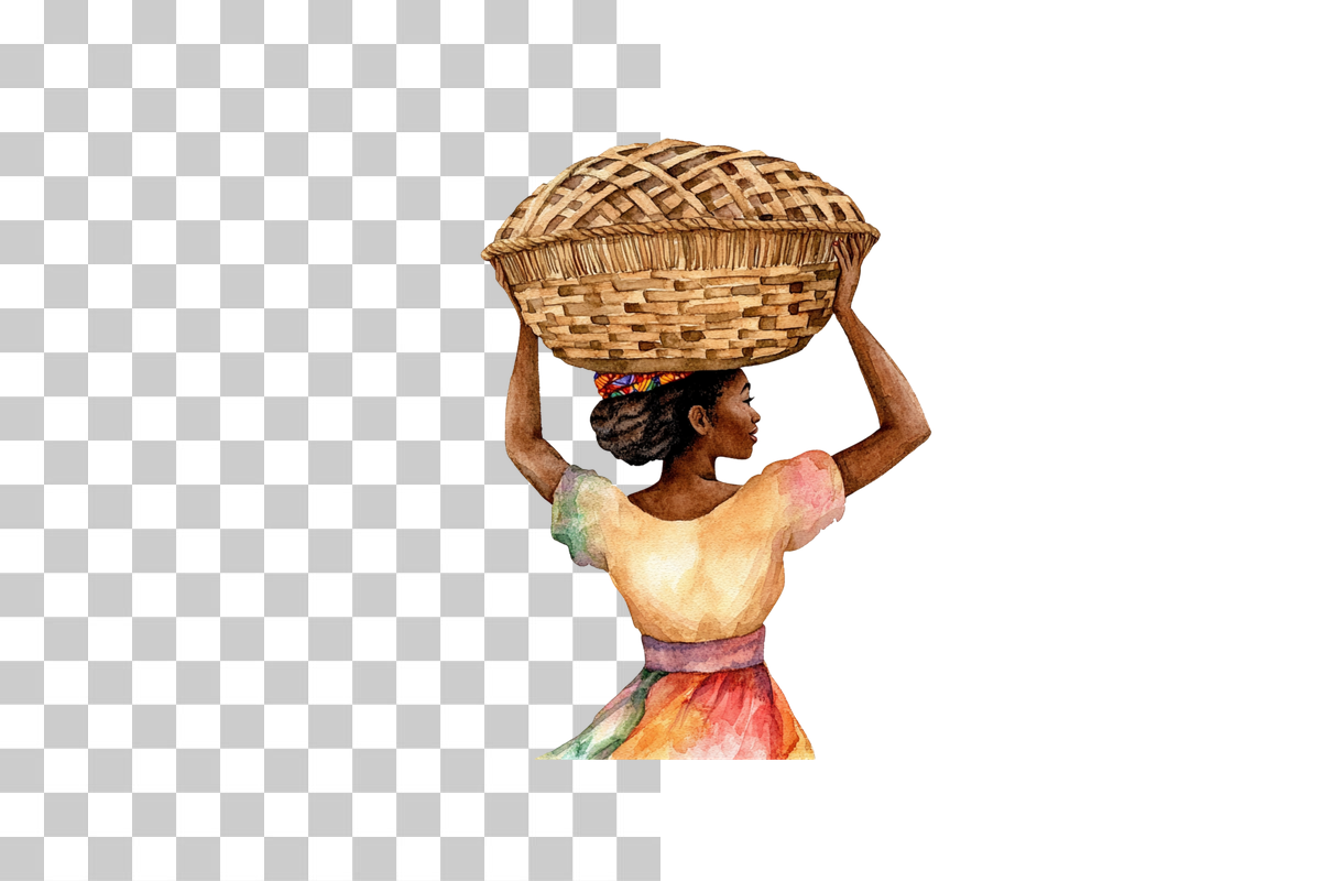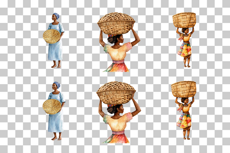 African Woman Carrying Basket Clipart Bundle