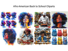 Celebrate the joy of learning with cliparts featuring Afro American children and school essentials. These illustrations highlight diversity and empowerment, perfect for creating vibrant, inclusive projects.