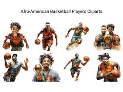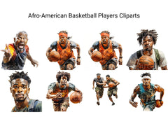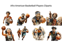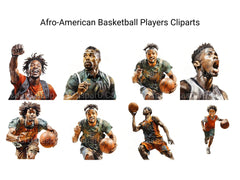 Experience the thrill of the game with our Afro-American Basketball Players clip art. These dynamic digital illustrations showcase skilled athletes in action on the basketball court, their athleticism and determination shining through, perfect for adding a touch of sportsmanship and cultural representation to your designs, whether for sports-themed artwork, athletic illustrations, or cultural projects, celebrating the talent and diversity of Afro-American basketball players in captivating detail.