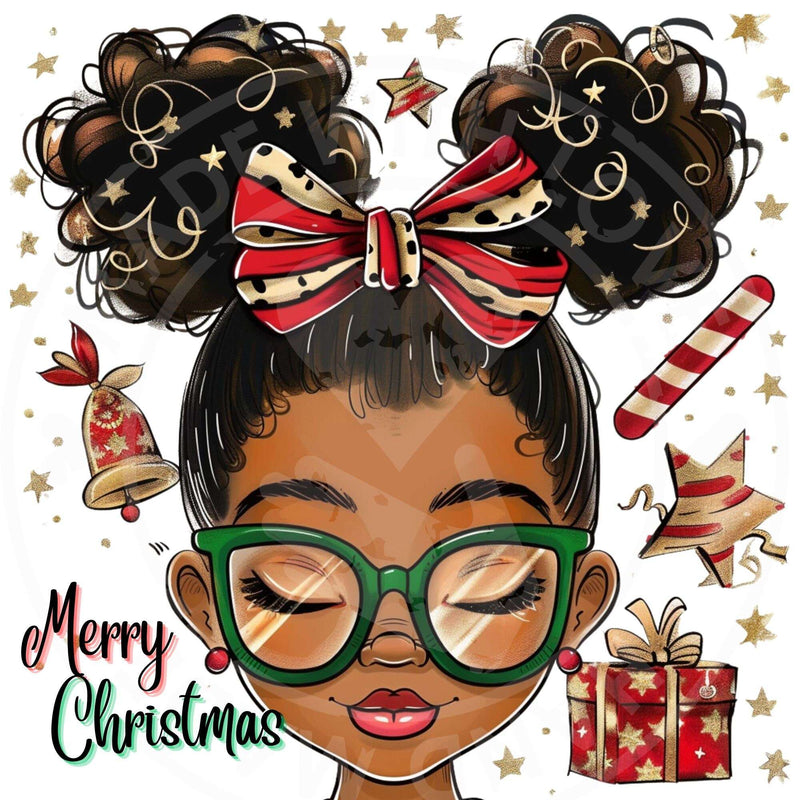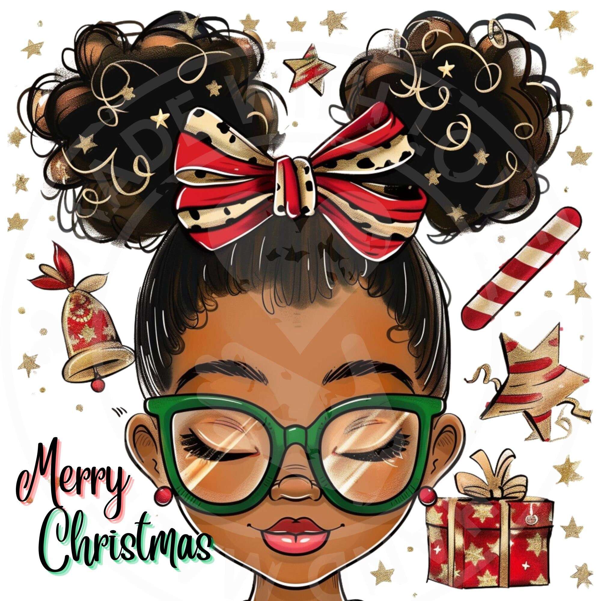Jingle in style with this Afro Messy Bun Christmas Clipart set, featuring festive hair designs, perfect for holiday crafts.