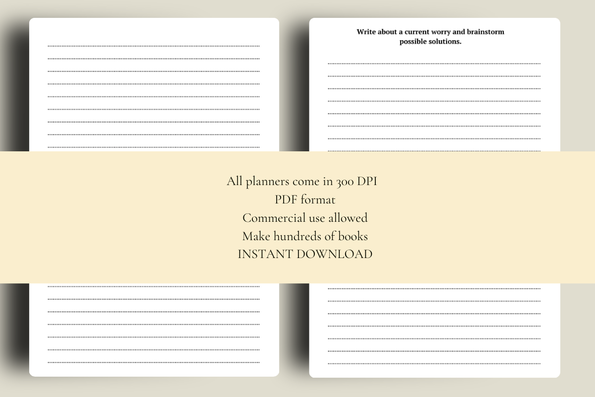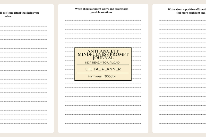 Discover tranquility with our Anti Anxiety Mindfulness Prompt Journal KDP Planner, designed to guide you through calming exercises and reflective prompts. Perfect for stress relief and mental clarity, this planner is your companion for a peaceful mind. Embrace mindfulness with beautifully crafted pages that inspire relaxation and self-discovery. Ideal for daily use, it helps you cultivate a serene lifestyle. Elevate your mental wellness journey with this essential tool for anxiety management and personal growth.