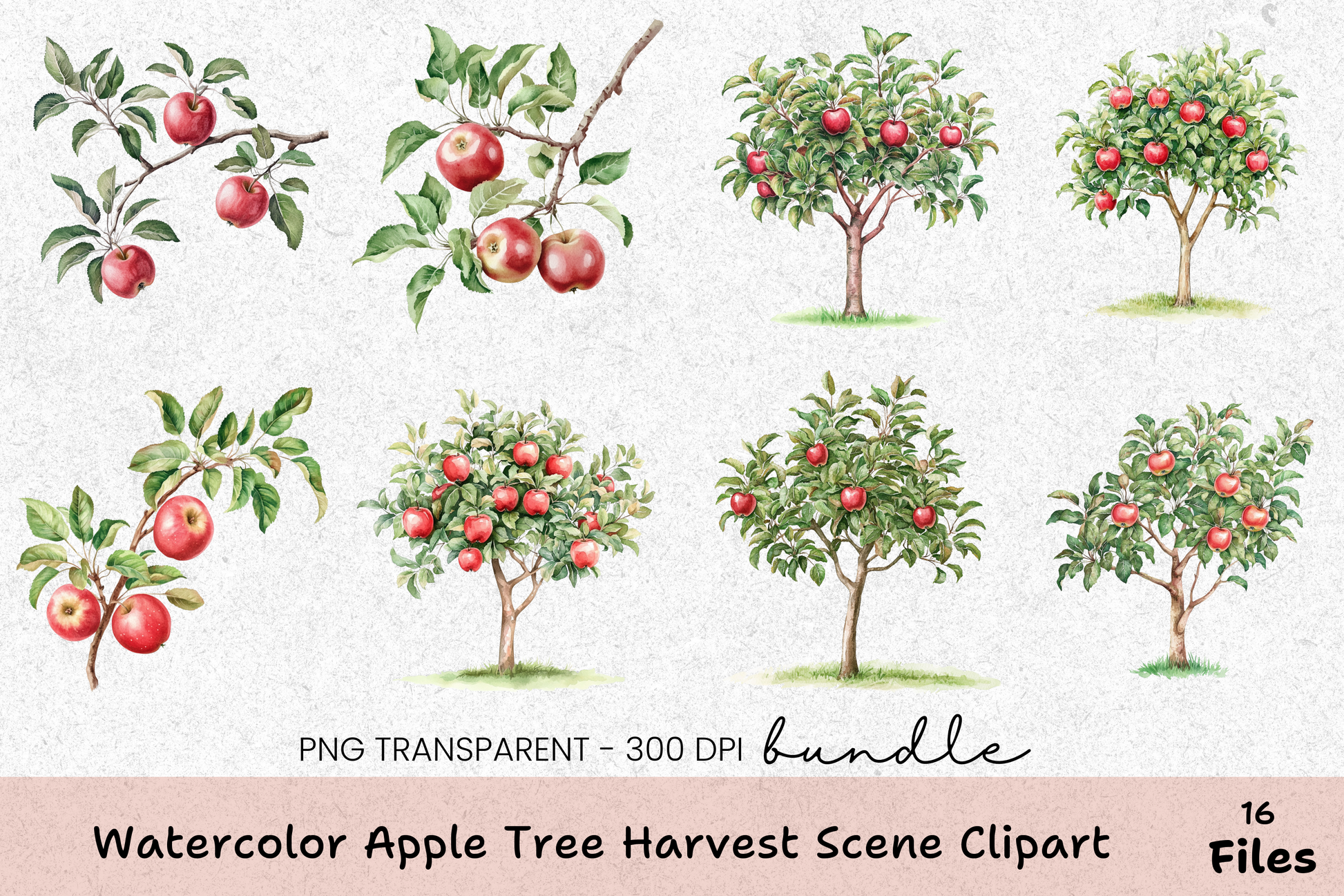 Transform your projects with the Apple Tree Harvest Scene Clipart Bundle, featuring charming apple orchard designs perfect for seasonal crafts and decor.
