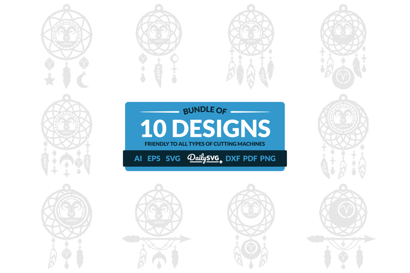 Capture celestial charm with the Aries Dream Catcher Laser Cut Clipart Set, featuring intricate designs perfect for mystical home decor and creative projects.