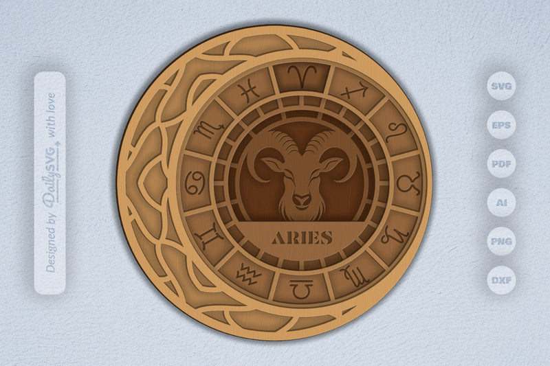Unlock creativity with the Aries Zodiac Laser Cut SVG Bundle, featuring intricate Aries designs perfect for personalized gifts, home decor, and unique craft projects.