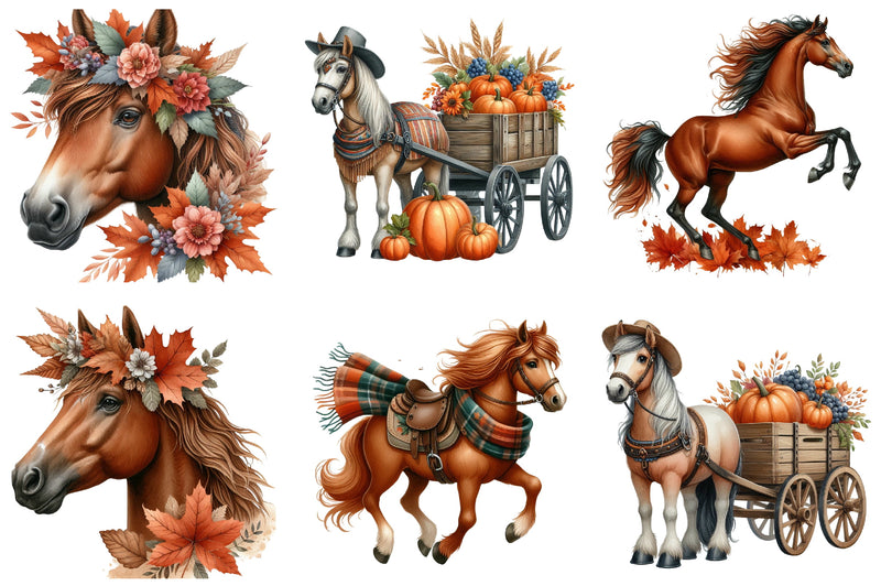 Autumn Brown Horse Clipart Bundle