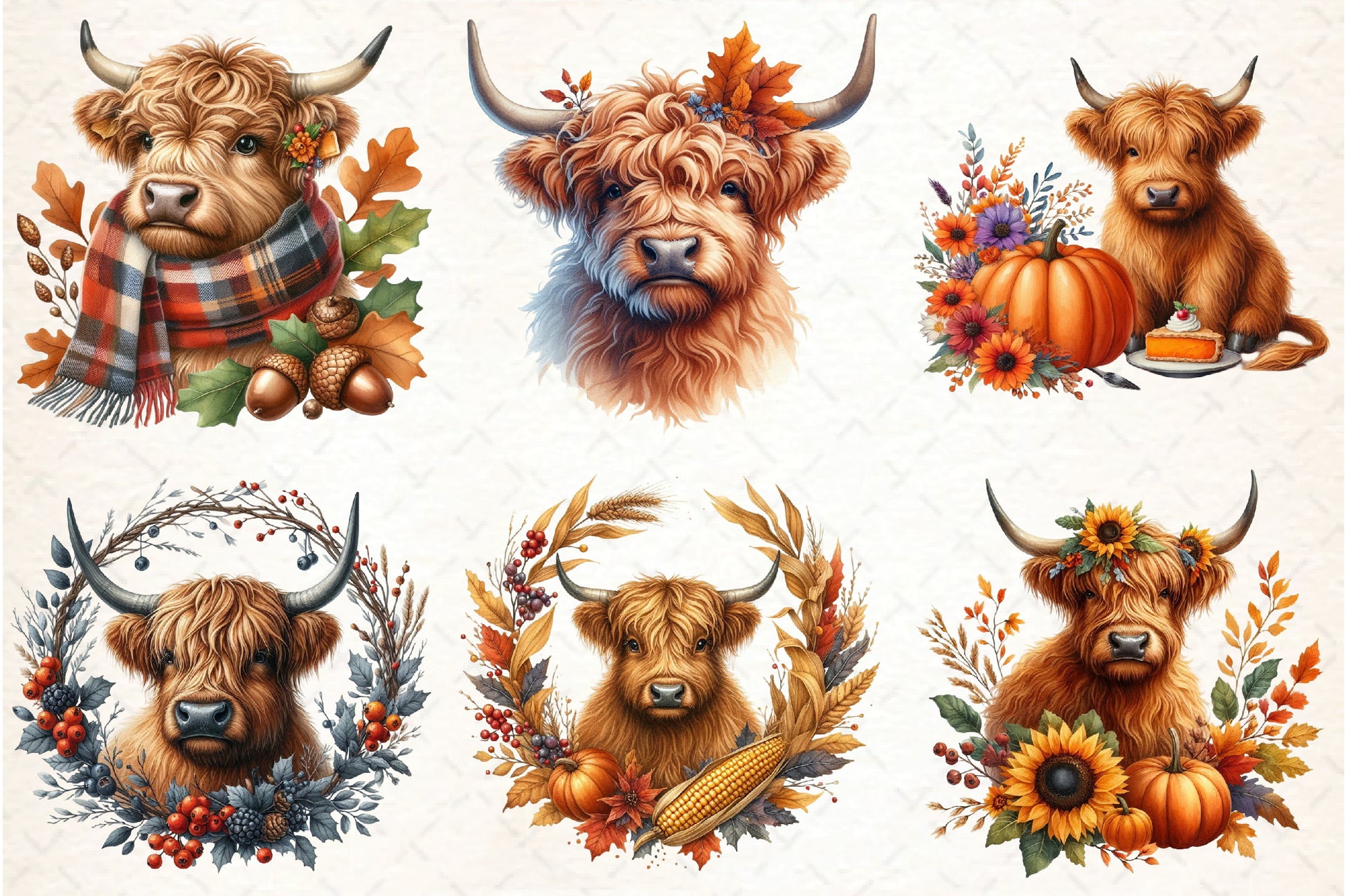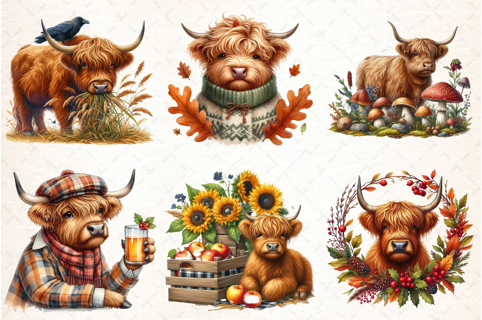 Embrace the charm of the season with our Autumn Highland Cow Clipart Bundle, featuring delightful highland cow illustrations perfect for cozy fall projects. Ideal for scrapbooking, invitations, and seasonal crafts, these unique designs bring warmth and character to your creative endeavors. Capture the essence of autumn with this versatile clipart collection, perfect for adding a rustic touch to your digital and print projects.