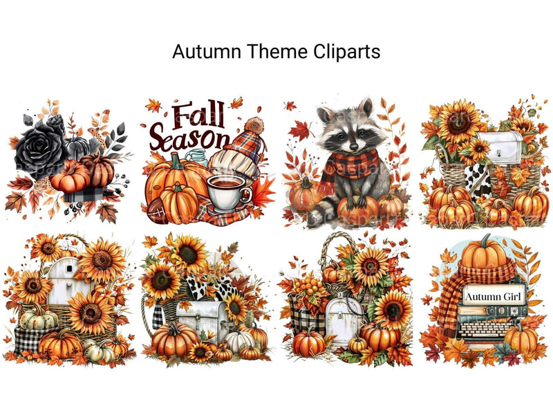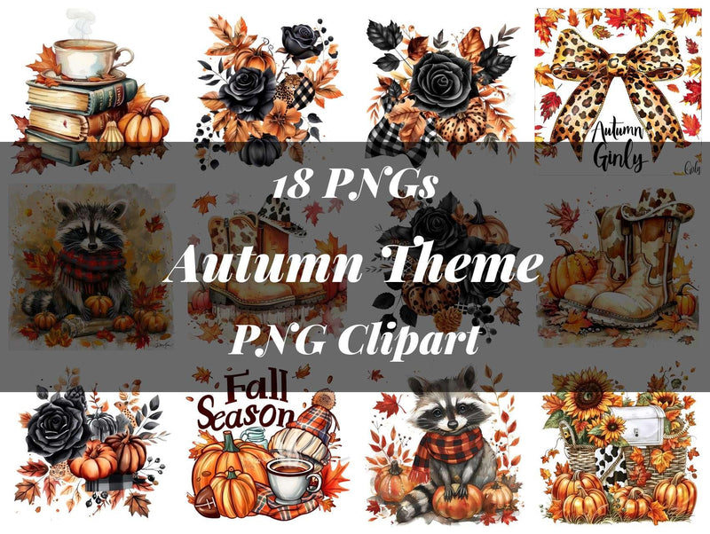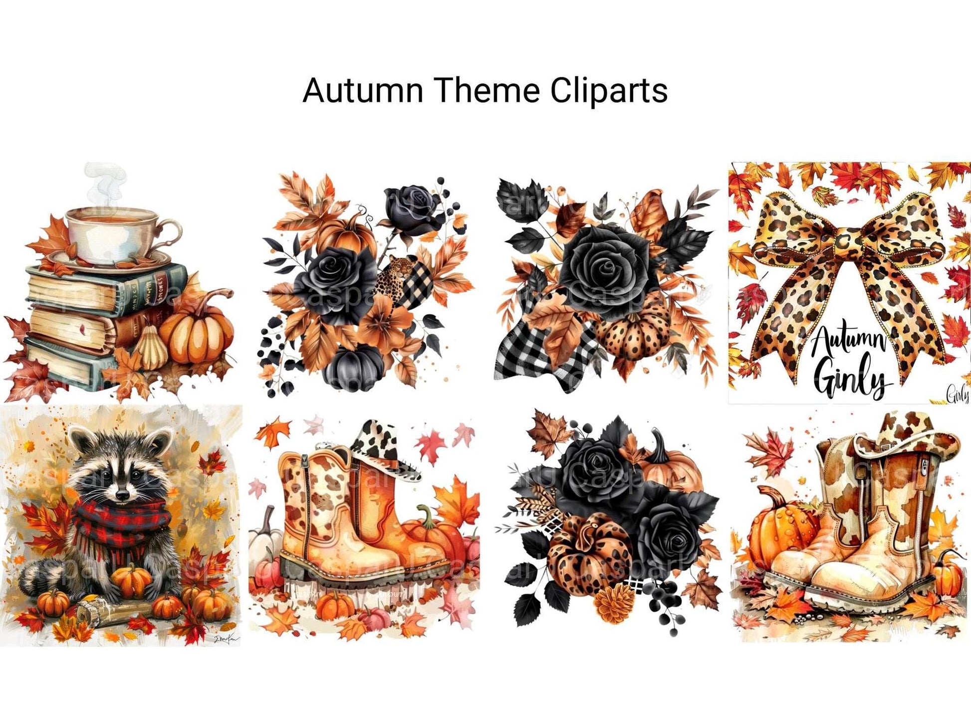 Celebrate the season with this Autumn Theme Clipart set, featuring warm fall elements, perfect for cozy seasonal designs.