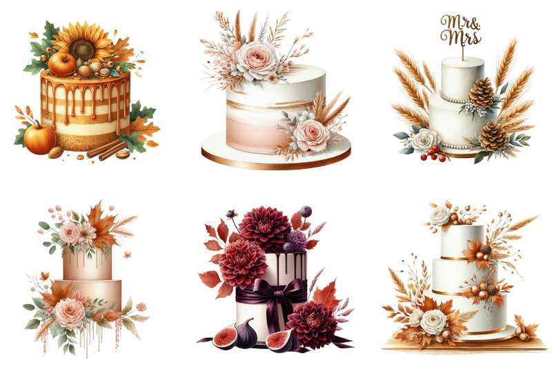 Autumn Wedding Cake Clipart Bundle