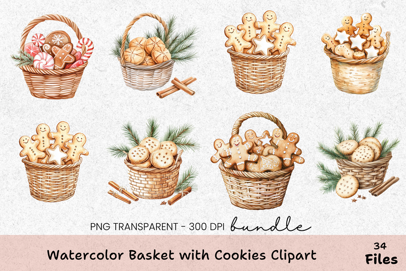 Delight in our Basket with Cookies Clipart Bundle, featuring charming cookie designs perfect for festive projects and creative crafts. Ideal for digital scrapbooking, invitations, and more, this bundle adds a sweet touch to any creation. Unleash your creativity with these high-quality, versatile clipart images, perfect for holiday cards, party decor, and personalized gifts. Elevate your designs with this must-have collection, ensuring your projects stand out with a delightful, homemade feel.