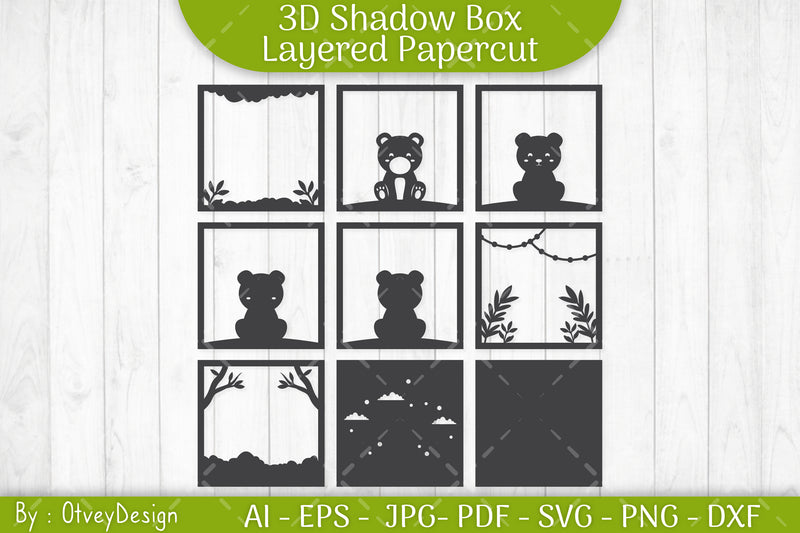 Bear Animals Shadow Box Layered Papercut SVG Bundle