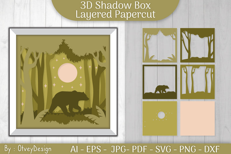 Bear Shadow Box Layered Papercut SVG Bundle