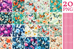 Beautiful Floral Butterfly Pattern Clipart Bundle