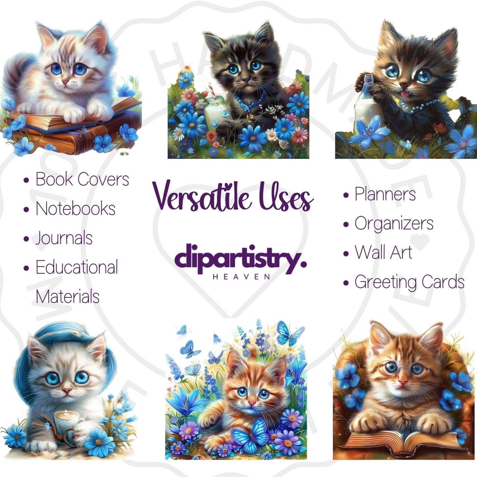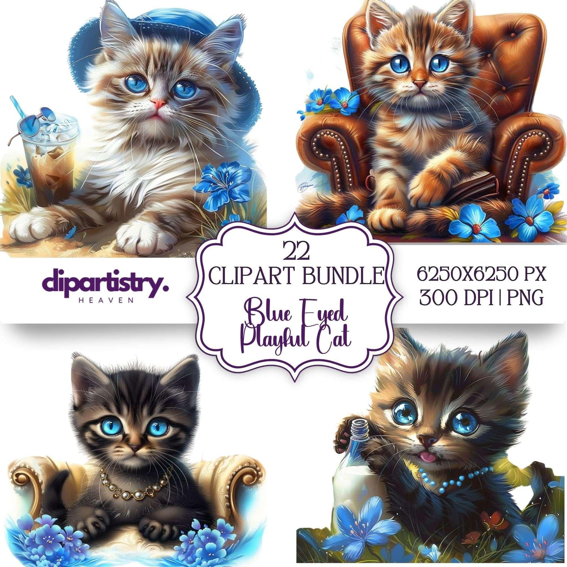 Gaze into this Blue Eyed Cat Clipart set, showcasing stunning feline designs, ideal for elegant cat-themed crafts.