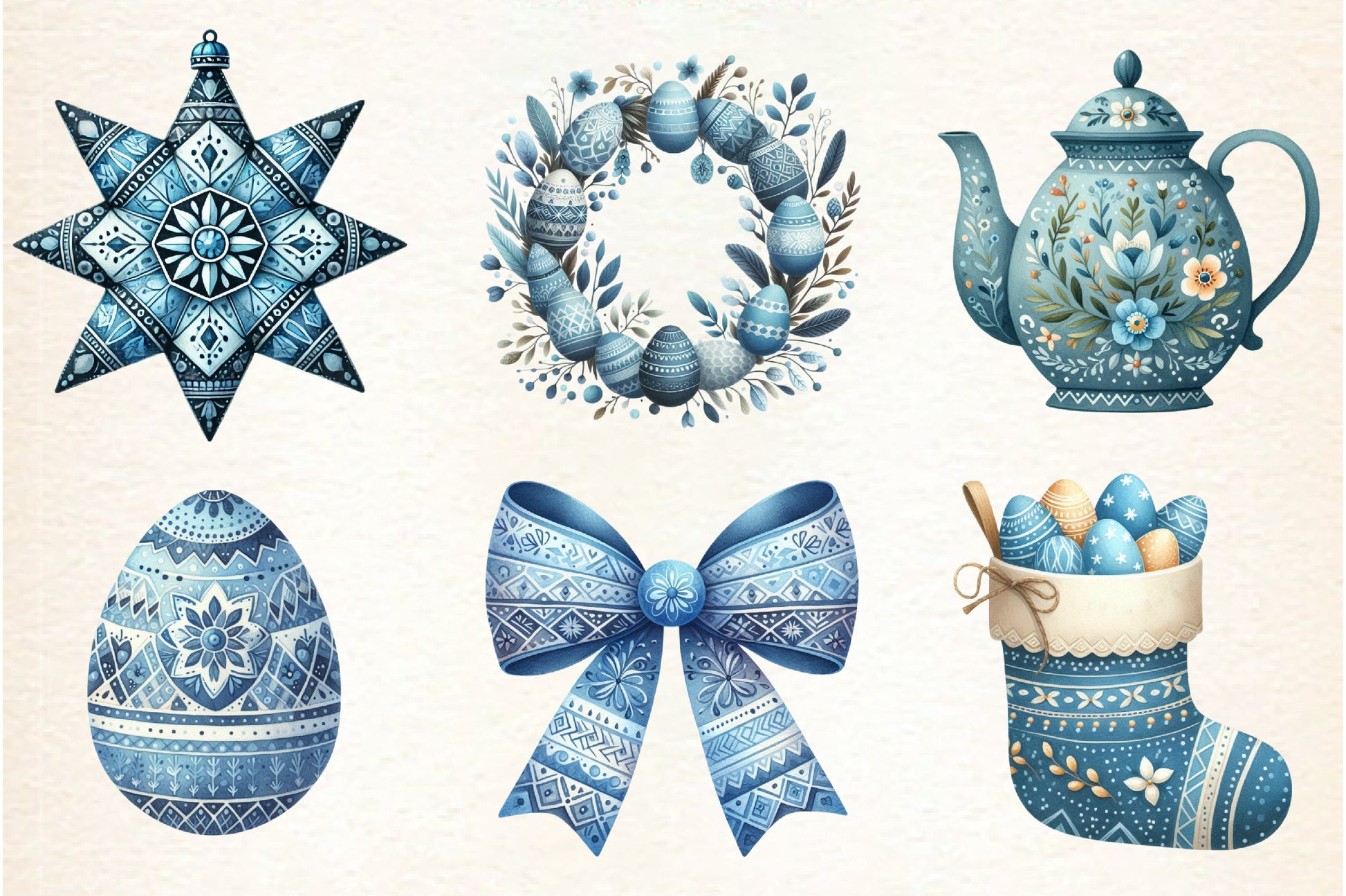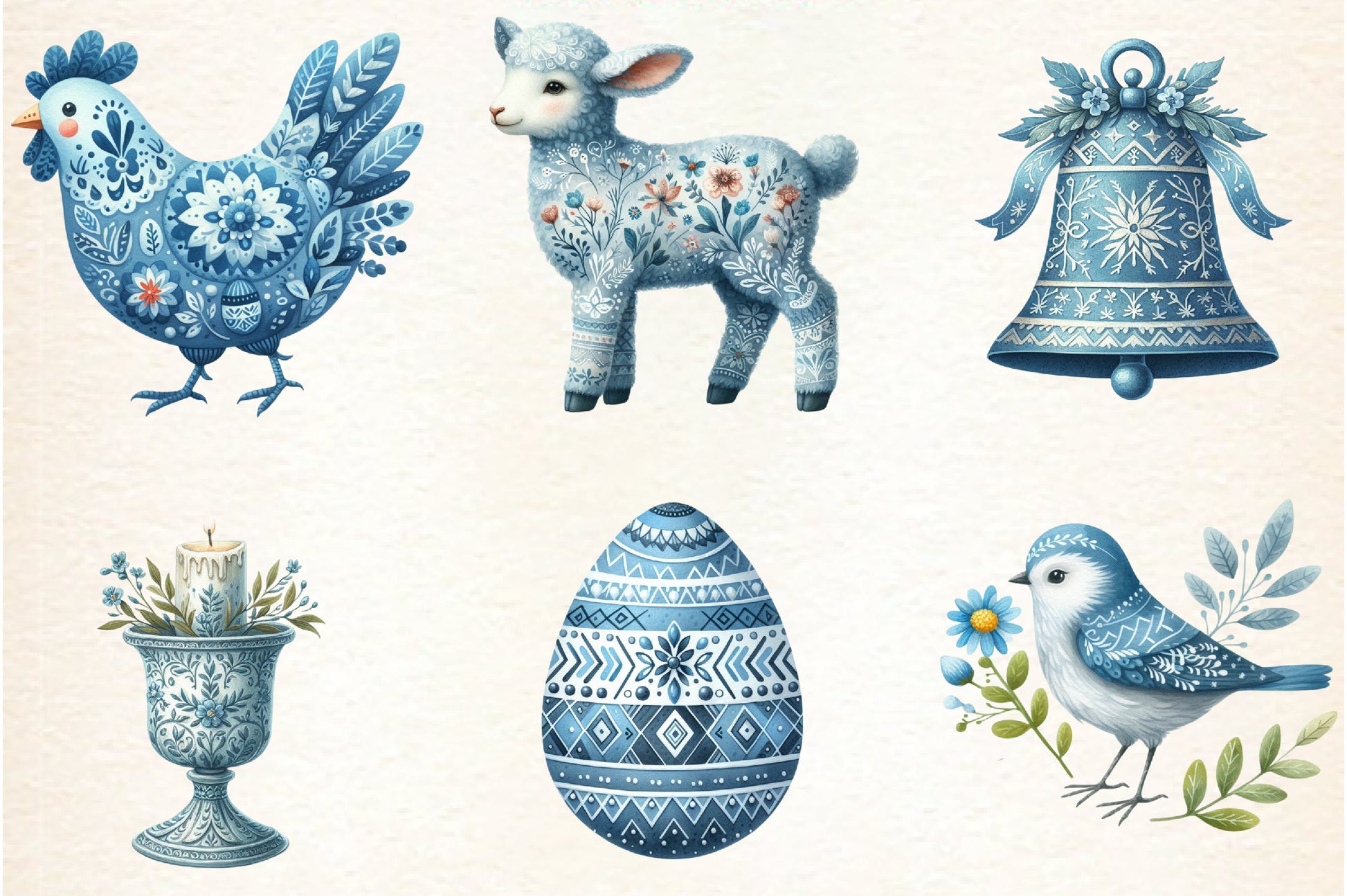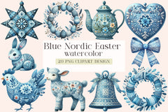 Blue Nordic Easter Clipart Bundle