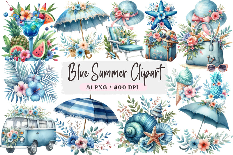 Blue Summer Clipart Bundle