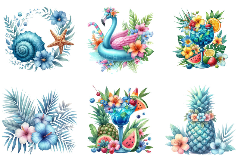Unleash your creativity with this exclusive collection of high-quality blue summer clipart, ideal for crafting eye-catching designs for any occasion.