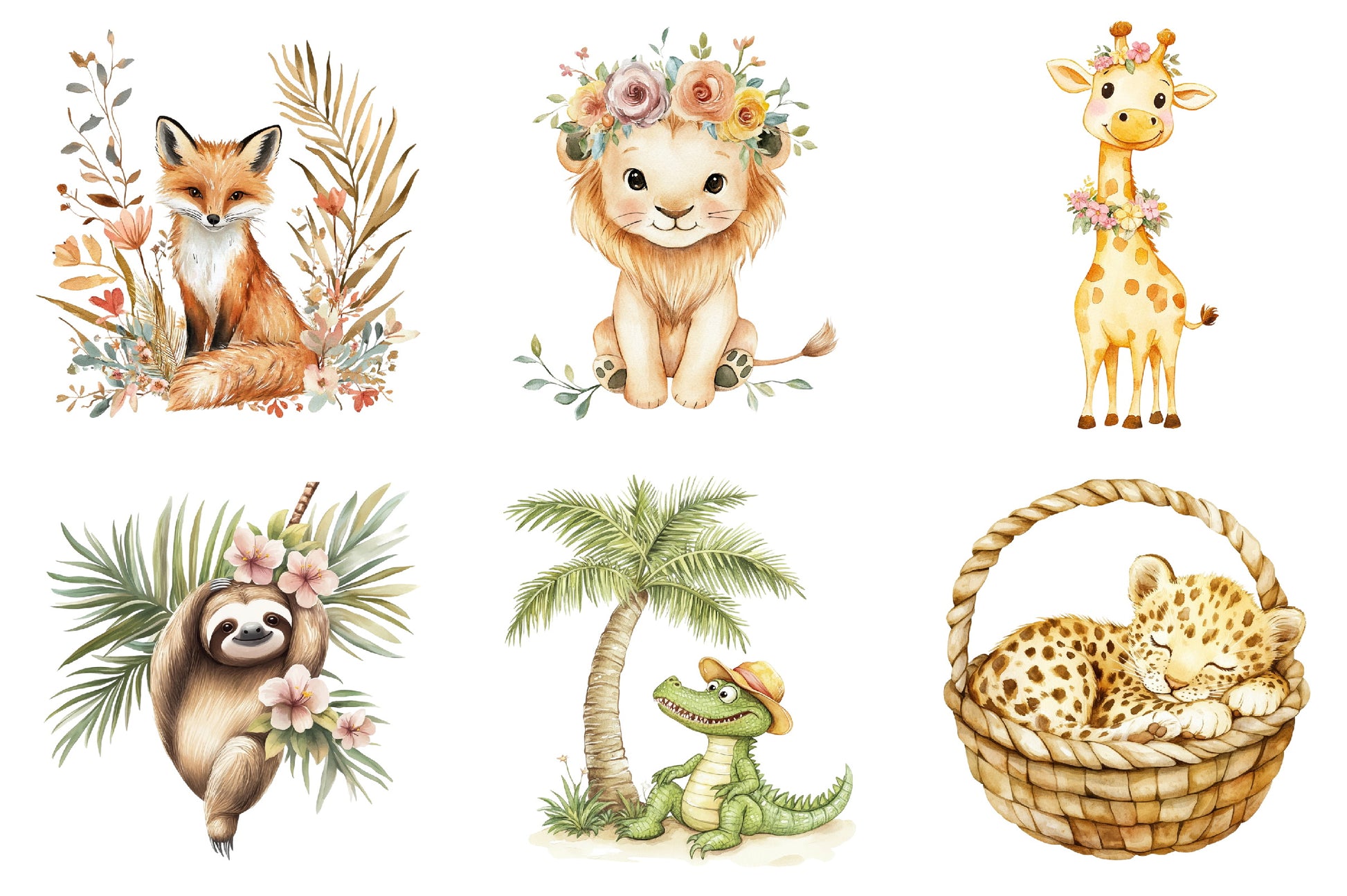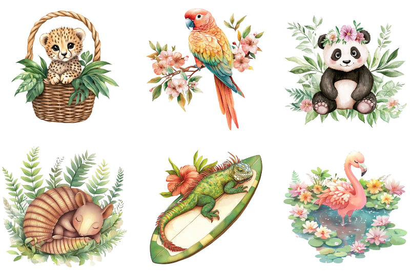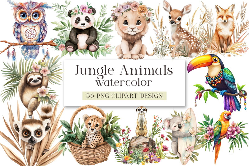 Transform your projects with this delightful collection of bohemian jungle animals, ideal for summer-themed invitations, scrapbooking, and more.
