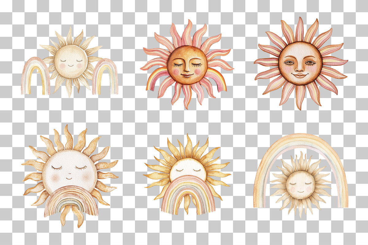 Elevate your artwork with this unique collection of sun and rainbow illustrations, ideal for digital scrapbooking, invitations, and wall art.